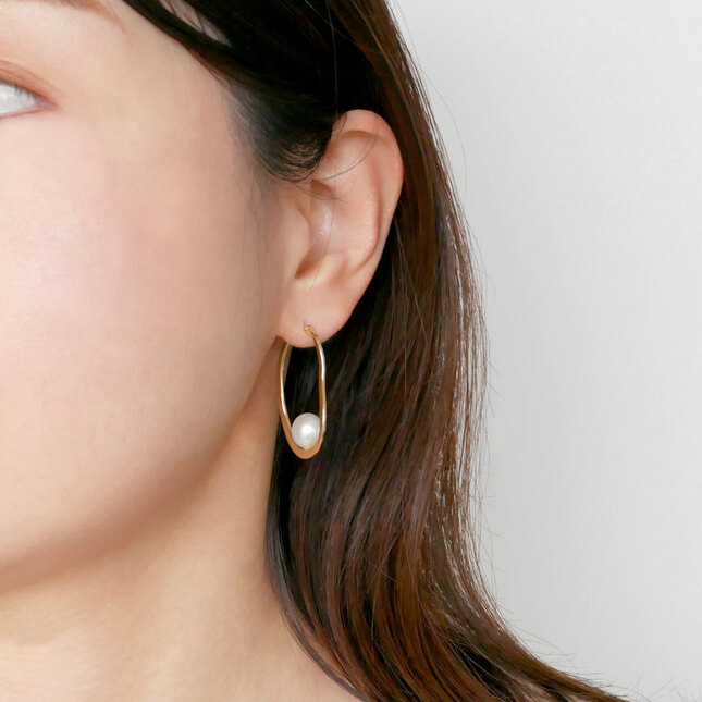 日本を代表する建築家 隈研吾氏と、デザイナー 大村真有美氏。彼らとヴァンドーム青山が創り出す、新感覚のジュエリーコレクションラインです。 ドイツ・フランクフルト美術館に作られた移動式茶室『TEEHAUS』(ティーハウス)をモチーフにしたピアス。 ゴールドで有機的な輪郭の美しさを、バロックパールでふんわりとした丸みを表現しています。 つややかなゴールドと優しい表情のパールの組み合わせは、モダンなスタイルにも、女性らしいスタイルにも合わせられる万能アイテム。 ニュアンスのある天然のバロックパールを使用することでより優しく、オーガニックな雰囲気に仕上げています。 ▼カラーバリエーションはこちらホワイトゴールド ▼シリーズアイテムはこちらTEEHAUS シリーズ▼6月誕生石 パール・真珠のアイテムはこちらKengo Kuma + MA,YU アイテム一覧