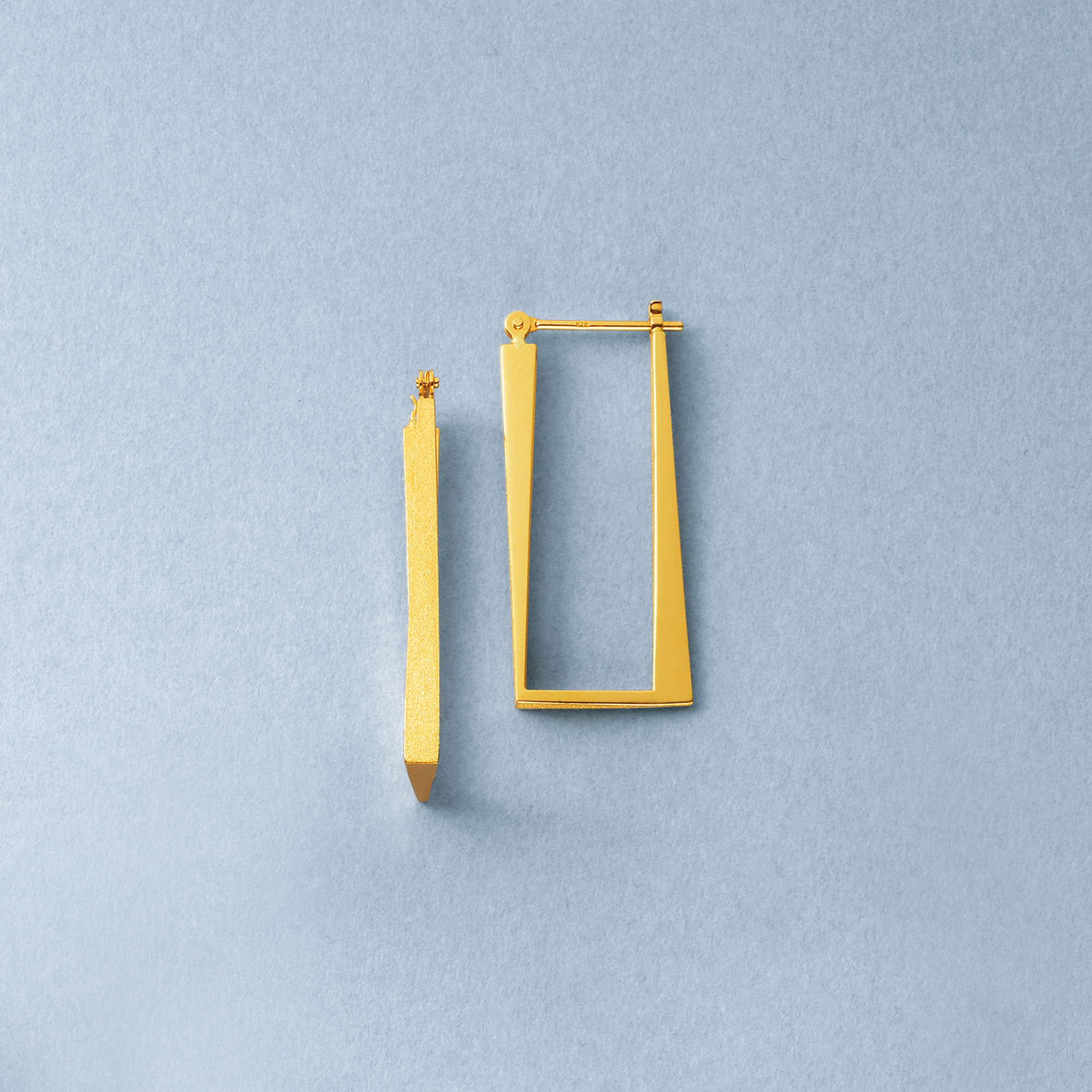 日本を代表する建築家 隈研吾氏と、デザイナー 大村真有美氏。彼らとヴァンドーム青山が創り出す、新感覚のジュエリーコレクションラインです。 隈研吾建築のディテールから抜き取ったシンプルな形(shape)をピアスにしました。 長方形モチーフは見る角度によって異なるマット/シャインの質感やラインの形状が楽しめるデザイン。 ゴールドの表面につけられたテクスチャーが建材のようなニュアンスを感じさせ、横顔にこなれたおしゃれ感をプラスしてくれます。 シンプルなオブジェクトの美しさを楽しめるモダンなデザインは、ベーシックなコーディネートのアクセントにおすすめです。 ▼シリーズアイテムはこちらピアス(縦:約28.5mm、横:約3.0mm/イエローゴールドカラー)Kengo Kuma + MA, YU アイテム一覧