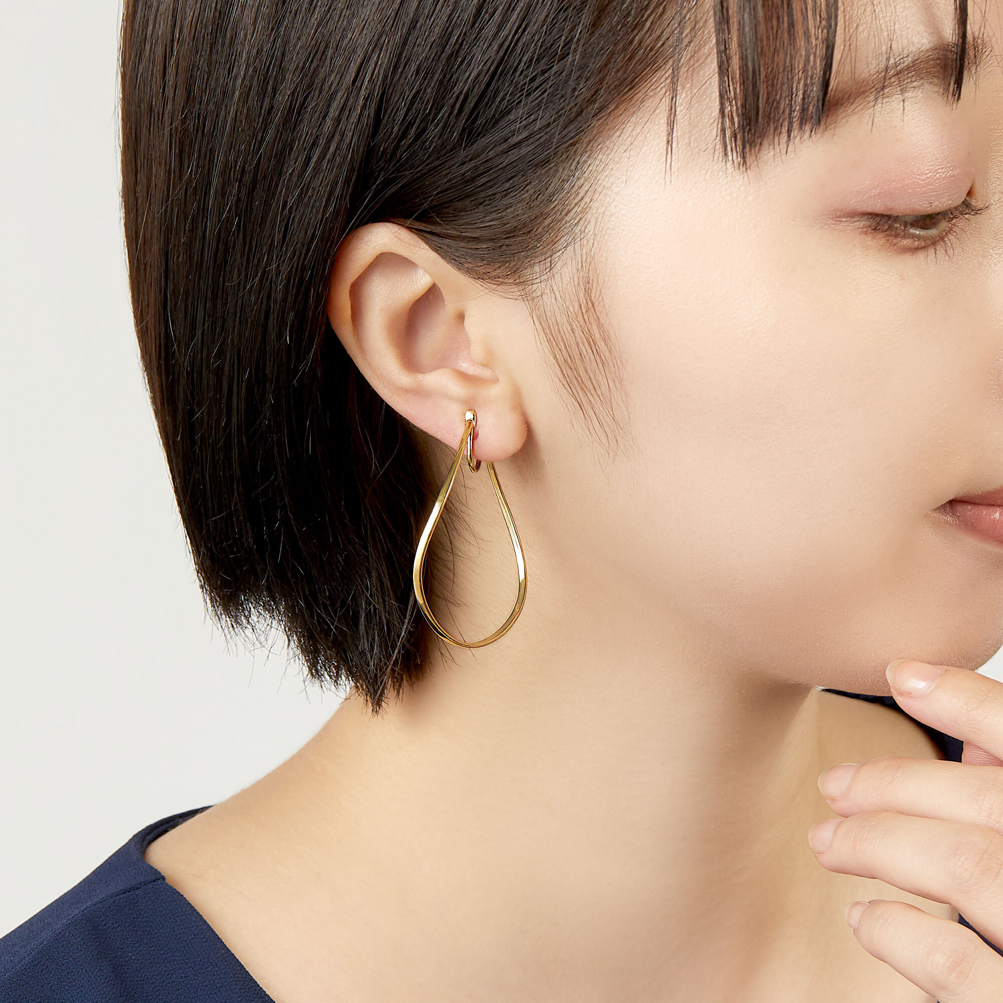 日本を代表する建築家 隈研吾氏と、デザイナー 大村真有美氏のデザインユニット。 新感覚で身近なアート、ライフスタイルの実現に取り組む彼らとヴァンドーム青山のコレクションラインです。 隈研吾氏がスパゲティから空間の発想を得たシリーズ。 つややかなゴールドの、楕円と雫形の中間のような絶妙なフォルム。 シンプルなデザインでどのようなコーディネートにも合わせやすいです。 やわらかい曲線が描くエアリーな立体感が、顔まわりをパッと明るく見せてくれます。 着け映えするイヤリングです。 ▼シリーズアイテムは こちらKengo Kuma + MA, YU アイテム一覧
