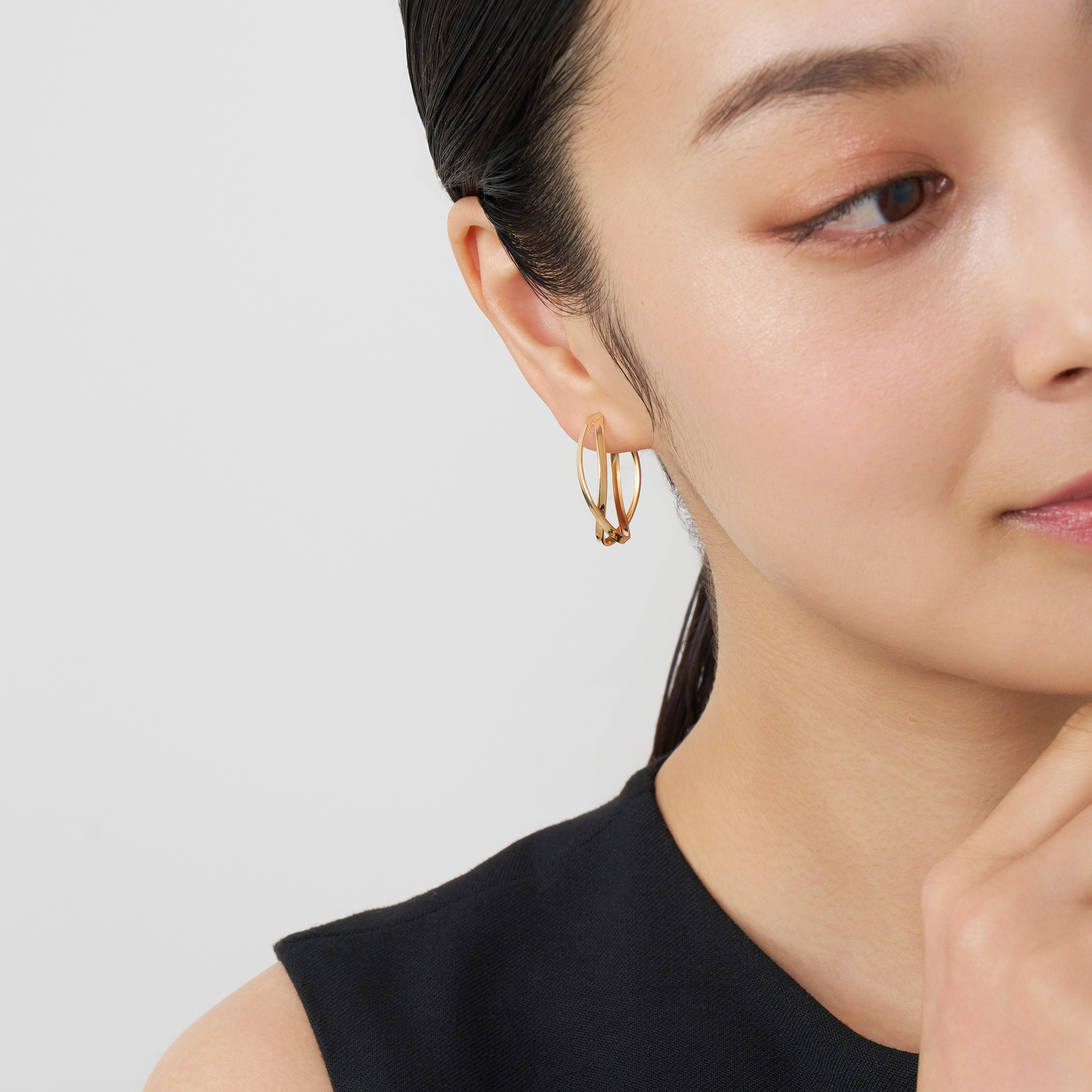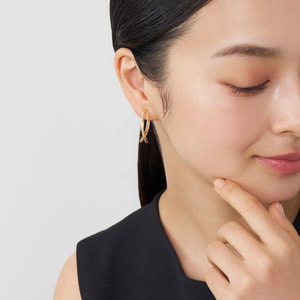 日本を代表する建築家 隈研吾氏と、デザイナー 大村真有美氏のデザインユニット。 新感覚で身近なアート、ライフスタイルの実現に取り組む彼らとヴァンドーム青山のコレクションラインです。 京都・平安神宮に作られたパビリオン「GURU-GURU」(ぐるぐる)がデザインソース。 ひとつながりのラインをぐるぐると巻いたような立体感が美しいK18イエローゴールドのフープイヤリング。 着け映えするサイズ感でありながら、軽やかで使いやすいデザイン。 ゴールドのツヤが顔まわりに華やかさをプラスします。 ▼シリーズアイテムはこちらKengo Kuma + MA, YU アイテム一覧