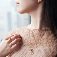 存在感のあるデザインのジュエリーは、地金のカラーやスタイリングをワントーンでまとめる事で、統一感が生まれます。