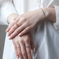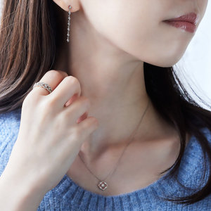 ダイヤモンドの華やかなリングとシンプルなチェーンリングの組み合わせが、モダンで洗練された印象を与えてくれます。