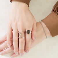 存在感のあるモダンで上質なリングと繊細なテニスブレスレットをコーディネート。 ピンクゴールドが柔らかい雰囲気を出しつつシックなカラーストーンやダイヤモンドの石使いで、どんなスタイルにもマッチするデザインです。
