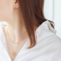 「ダイヤモンドリュール」の均一にダイヤモンドが並ぶデザインを生かして、ネックレスのチェーンを短く調節しチョーカー風にアレンジ。ロングのネックレスを重ねて胸元に立体感を出せば、シンプルなトップスに華やかな彩りがプラスされます。曲線というキーワードで繋げば、ネックレス2本、アーチ型のピアスというボリュームのあるコーディネートも統一感のあるアレンジに。