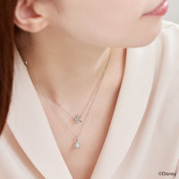 繊細でありながら立体感のあるデザインのプラチナのネックレスをレイヤード。