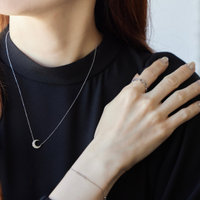 プラチナ・ウーマン コレクション新作の夜空にふんわりと浮かぶ月をイメージしたネックレスを主役にしたジュエリーコーディネート。