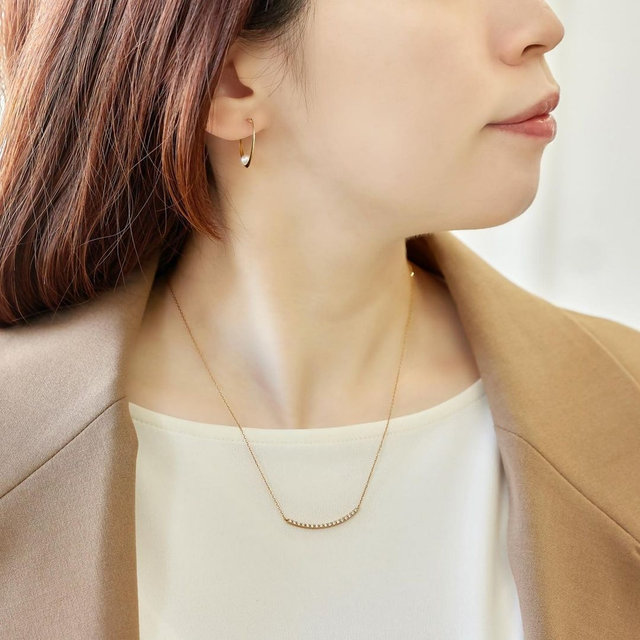 ほのかな光という意味を持つネックレス「ダイヤモンド リュール」は、なだらかにカーブしたライン状にダイヤモンドが配され、鎖骨に沿って馴染むデザイン。