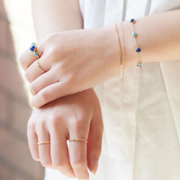 細身のリングや華奢なチェーンブレスレットは、どんなジュエリーともマッチしやすい万能アイテムです。