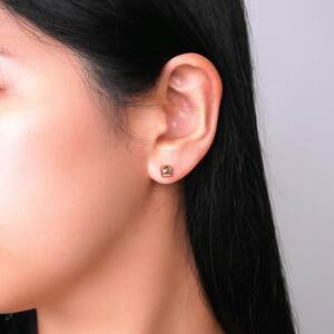 トップとキャッチが同じフォルムなので、複数のピアスホールがあれば耳の上の方に着けたり、アップヘアスタイルで耳の裏側もポイントとなるデザインに。