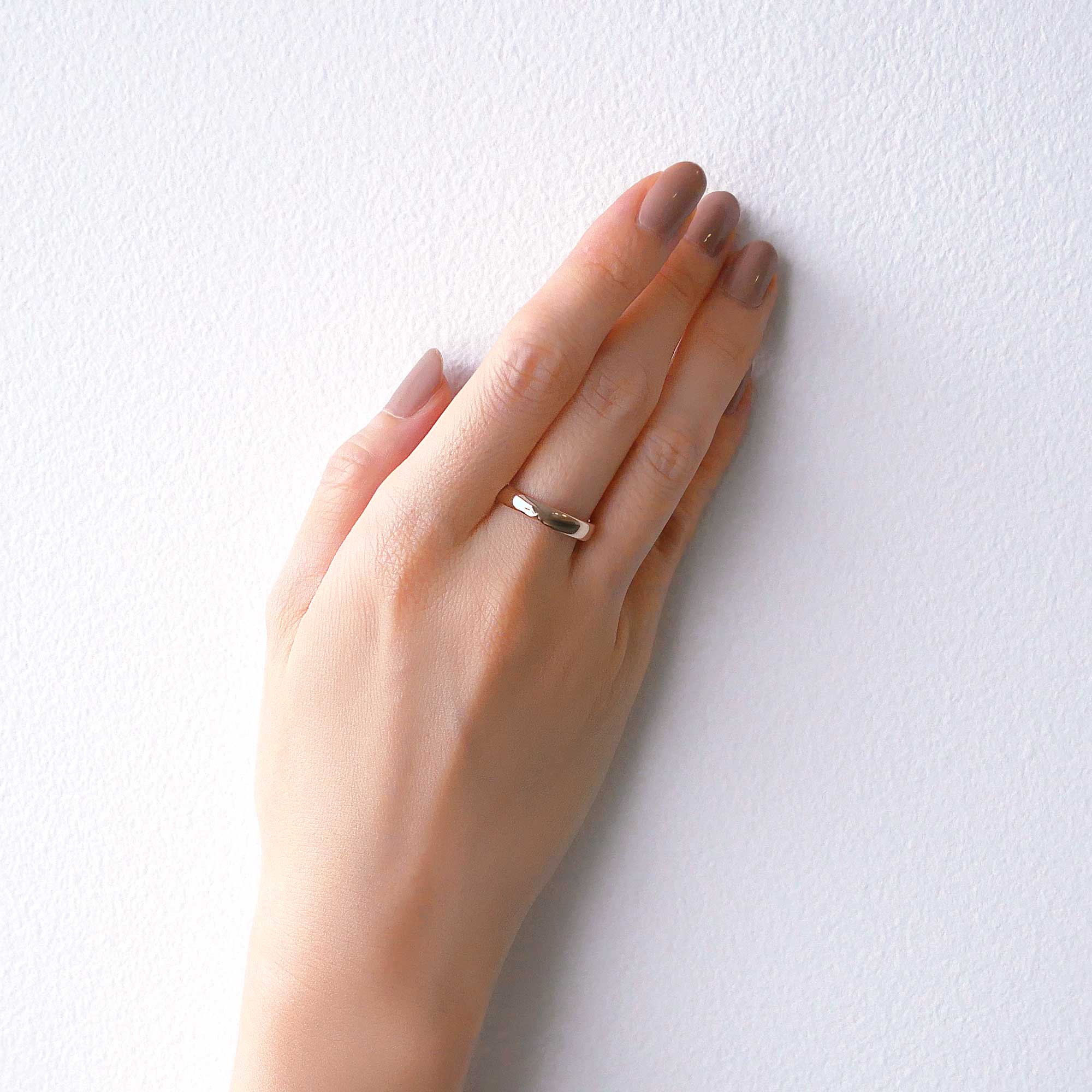 リングの幅にこだわり、細すぎず太すぎない、しっとりとした重さを感じられるリングです。