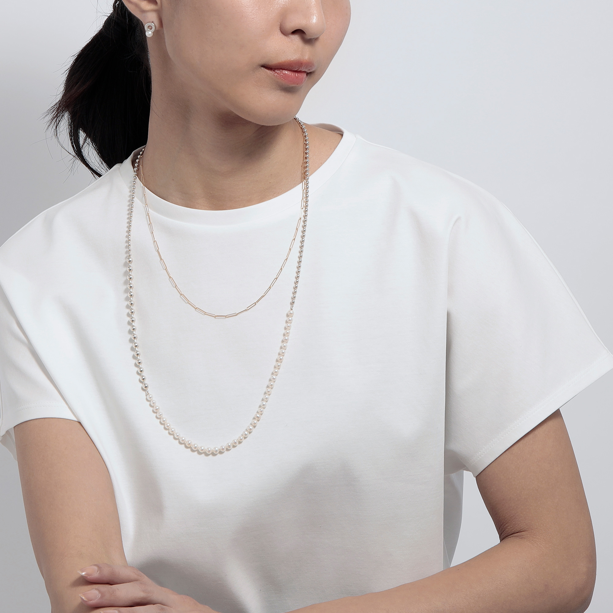 透け感のある軽やかなチェーンは、さらりとスタイリングのポイントになってくれます。