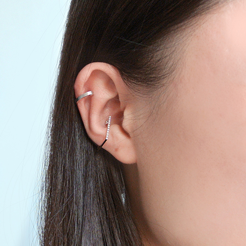 敢えて色の違うイヤーカフやピアスを重ねて着けるのもおすすめです。
