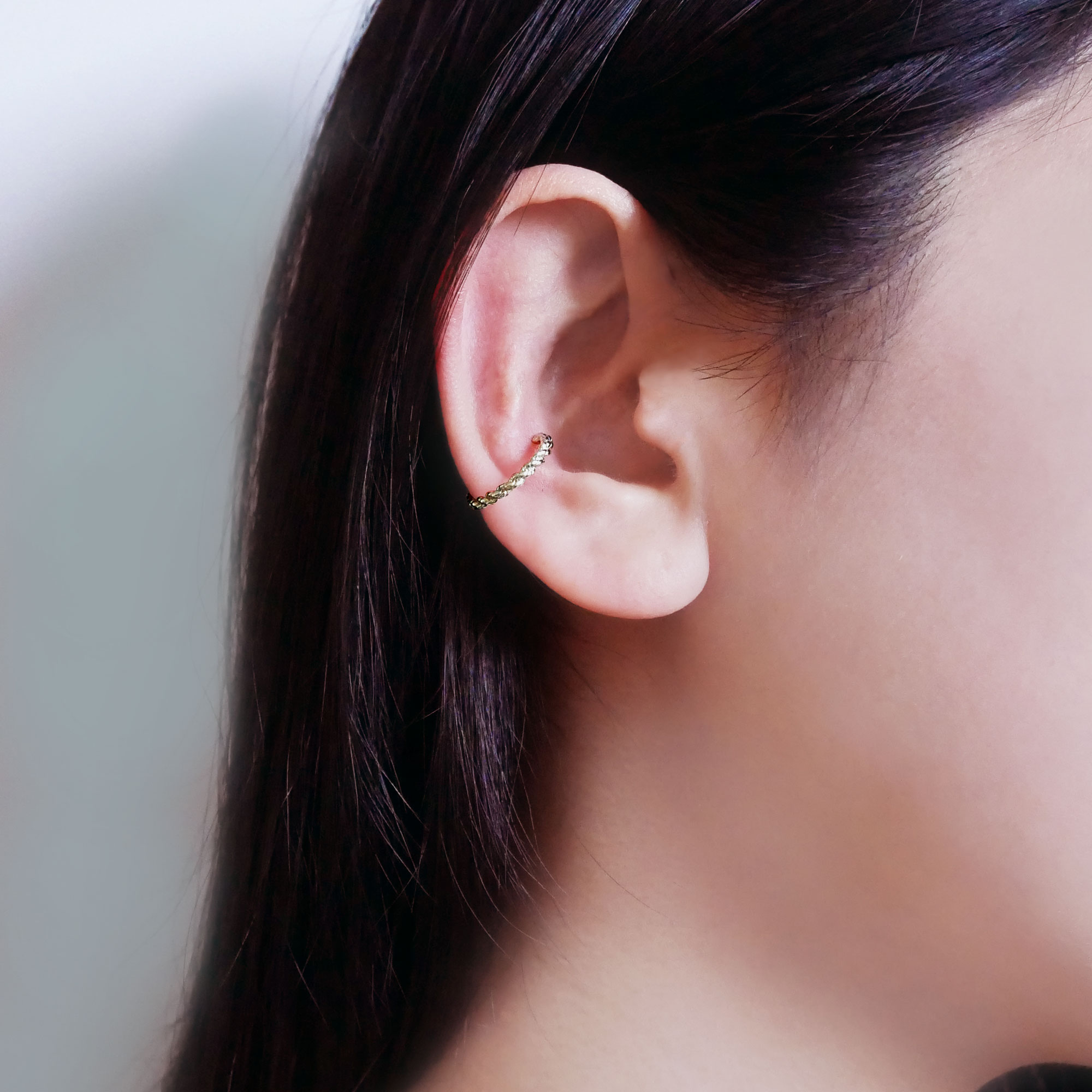 細部までで表現されたディテールが上品な印象。程よいボリューム感のイヤーカフは、ピアスやイヤリングとのコーディネートも楽しめます。