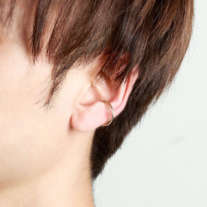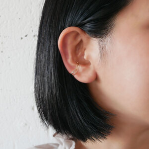 2つの線がサイズ違いで角度をつけて固定されており、身につけた時には2本のイヤーカフをつけているような見え方に。