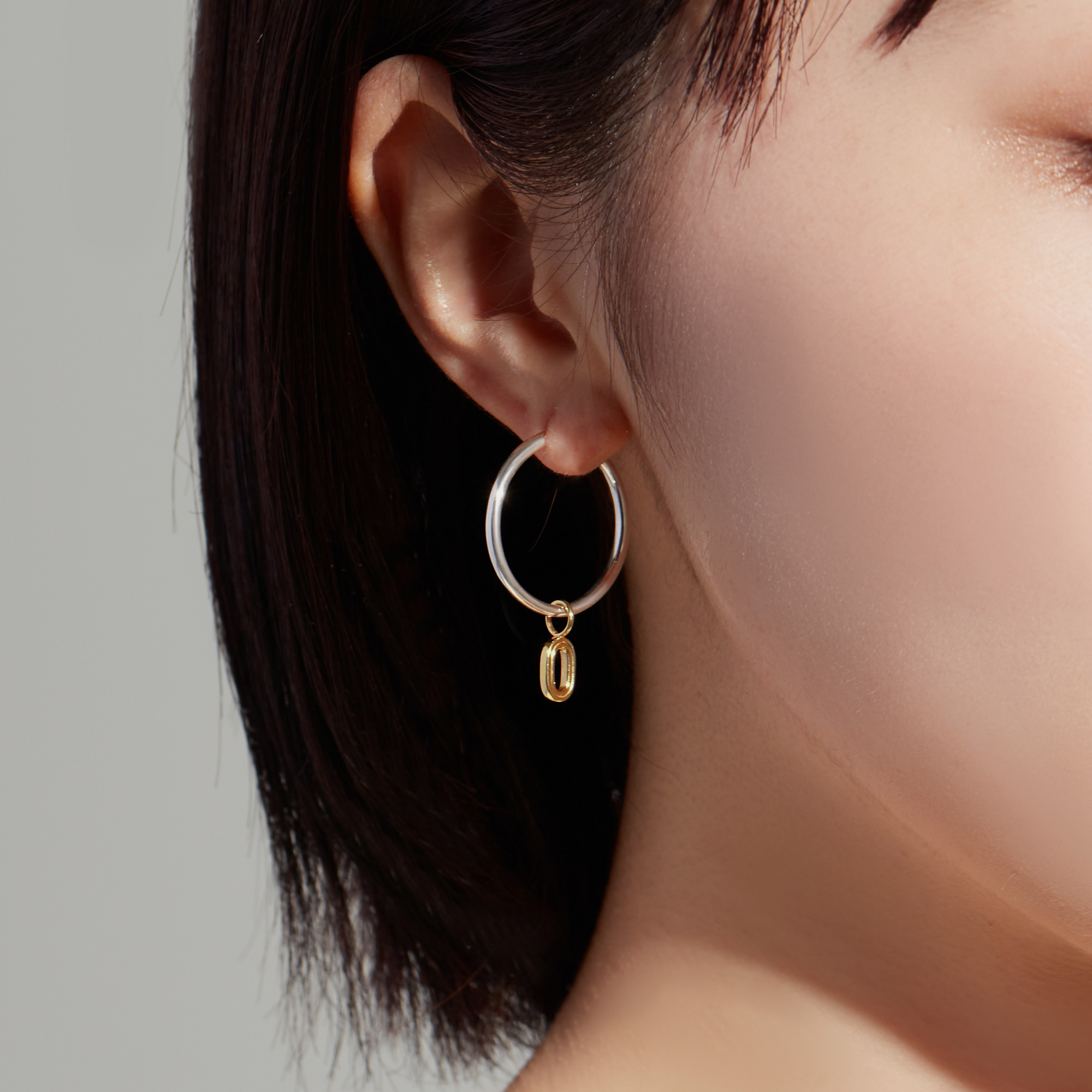 別売りのチェーンネックレスやフープピアスに通して、オリジナルのコーディネートをお楽しみいただけます。