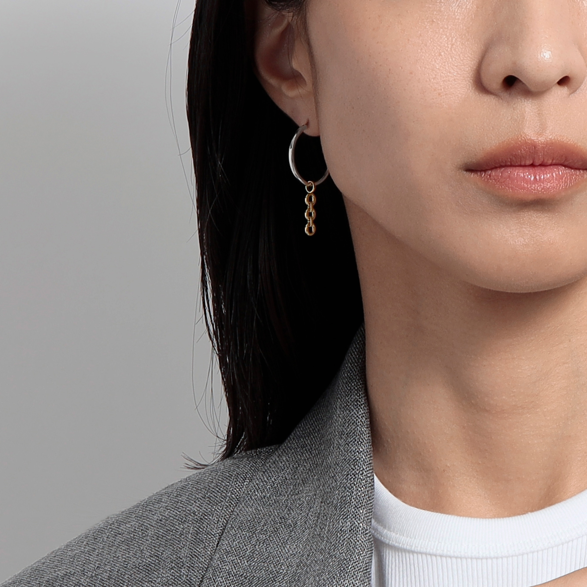 別売りのチェーンネックレスやフープピアスに通して、オリジナルのコーディネートをお楽しみいただけます。