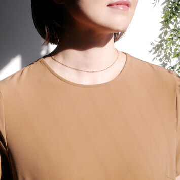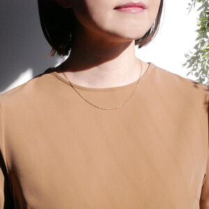小豆チェーンに捻りとカットが入ったデザインは、細身ながらも首元で軽やかに輝き、華やかな印象を与えます。