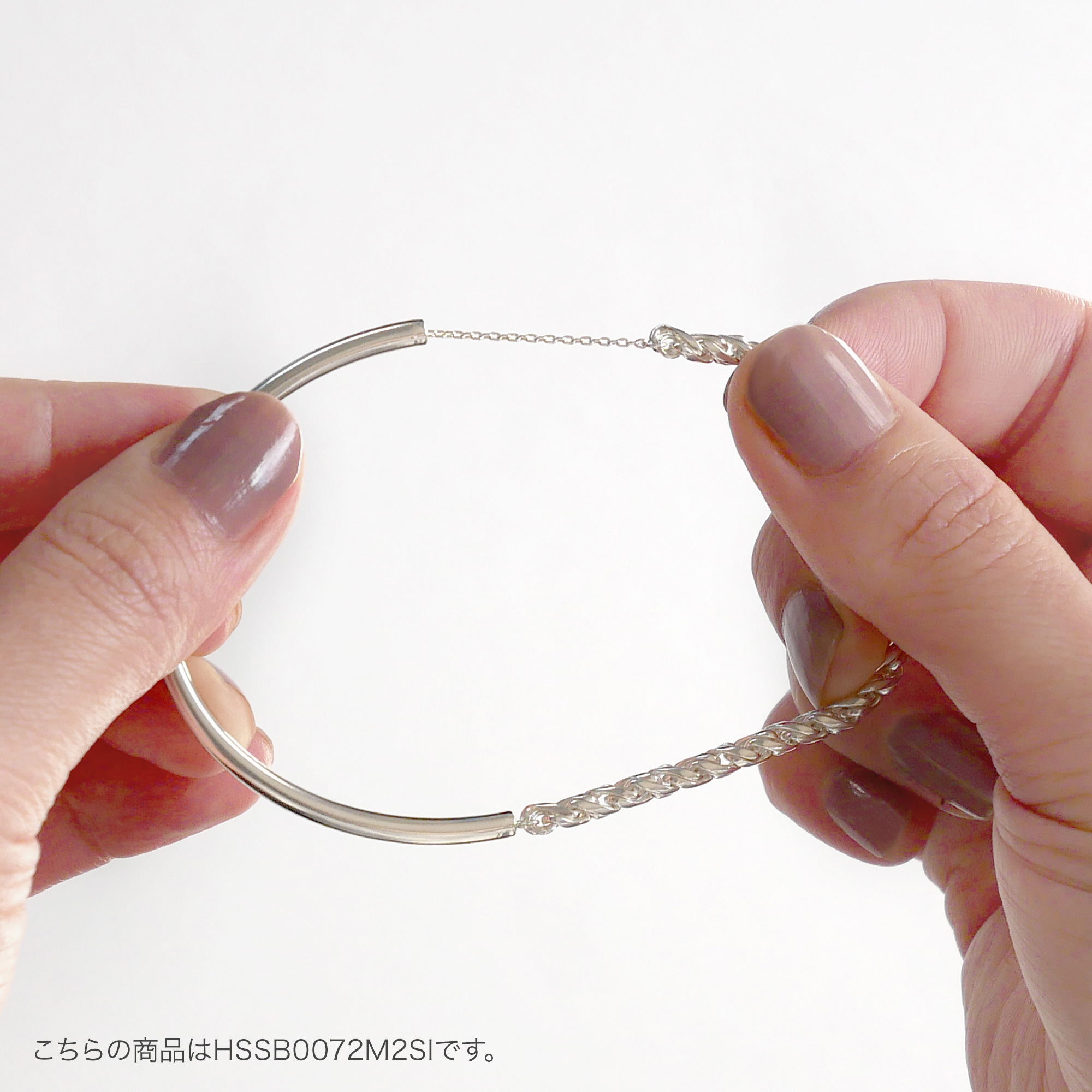 バーの内部にバネが入っておりチェーンとの接続部分が伸びる仕様となっている為、クラスプ金具がなくどこから見てもスタイリッシュな機能性とデザインが特徴です。