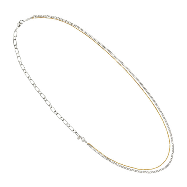 アズキチェーンにのみイエローゴールドメッキを施し、NUDE SILVERとのコンビカラーにする事で存在感のあるネックレスに仕上げました。