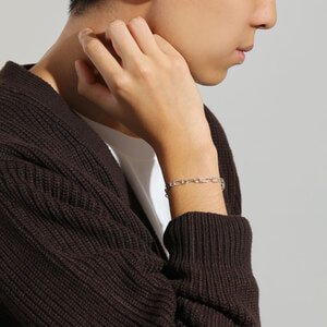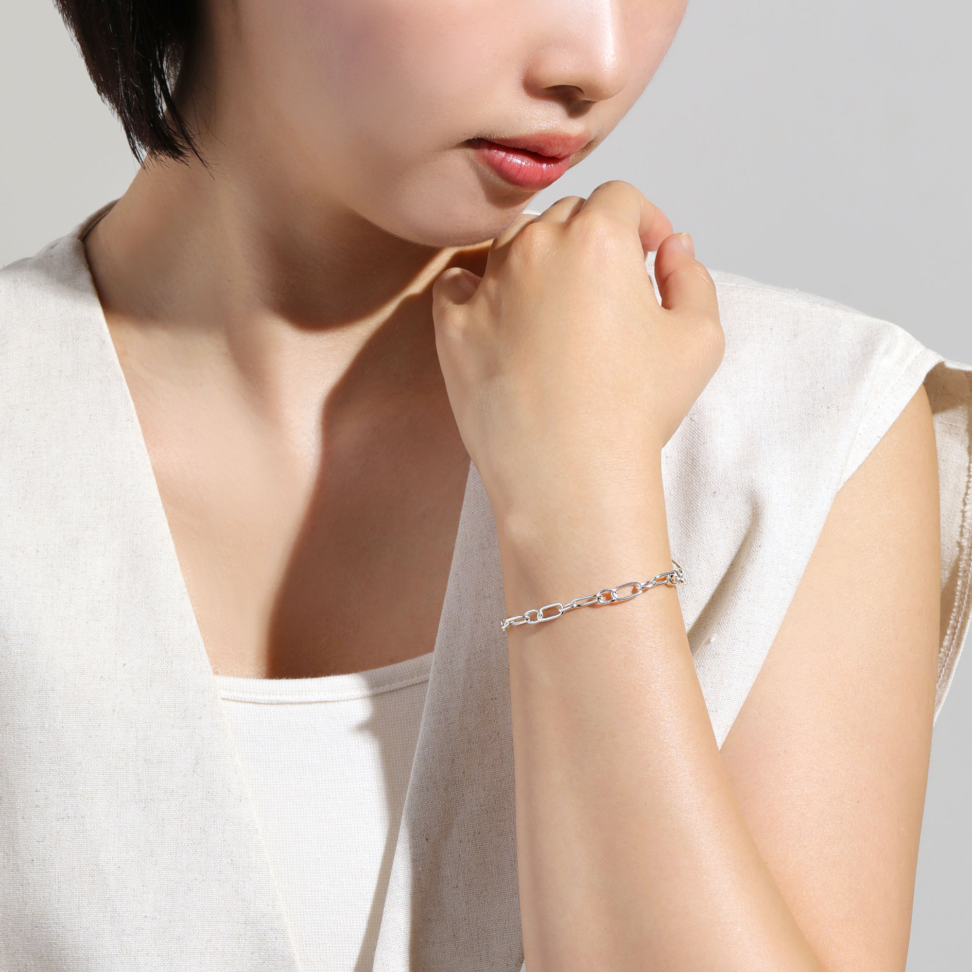 ロング&ショートのコマがニュアンスのあるチェーンなので、1本でサラッと着けて頂いても存在感のあるブレスレットです。