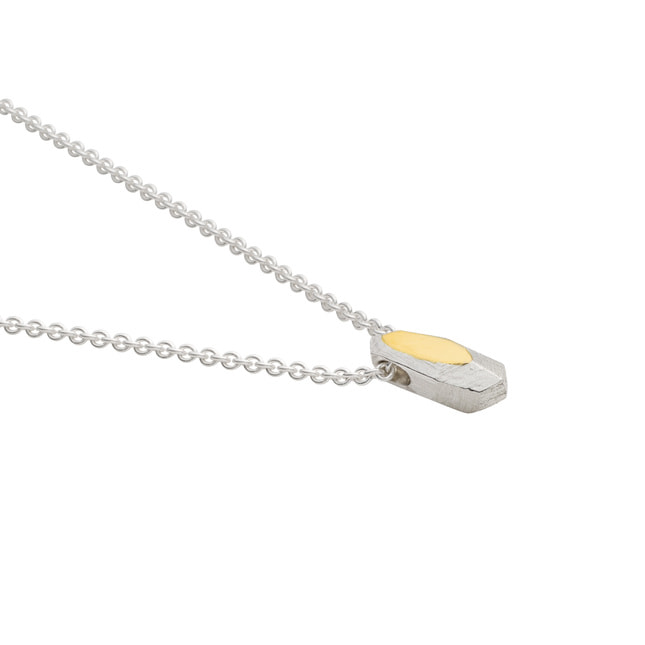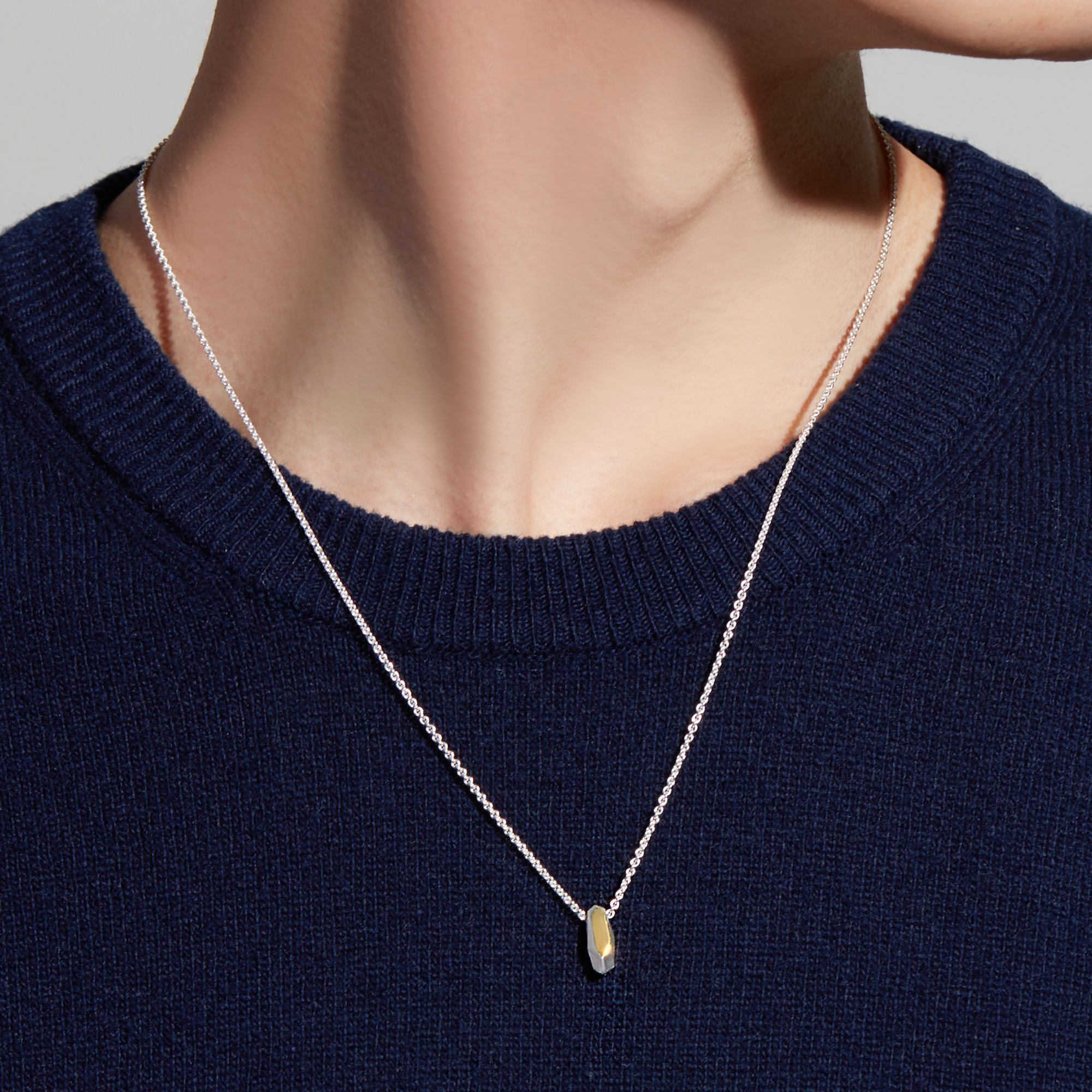 ランダムな形でカットが施されたデザインのネックレス。