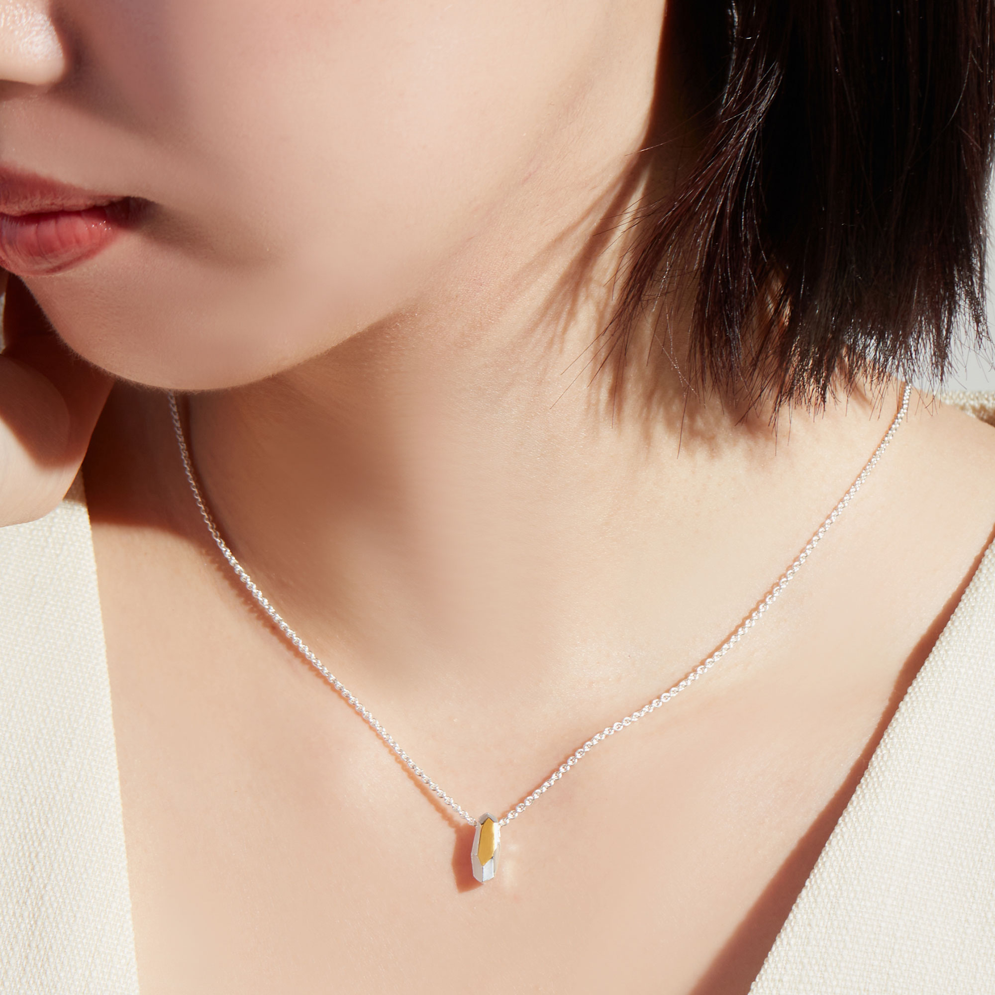 NUDE SILVERの輝きが胸元を明るく華やかに演出します。