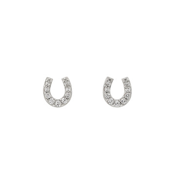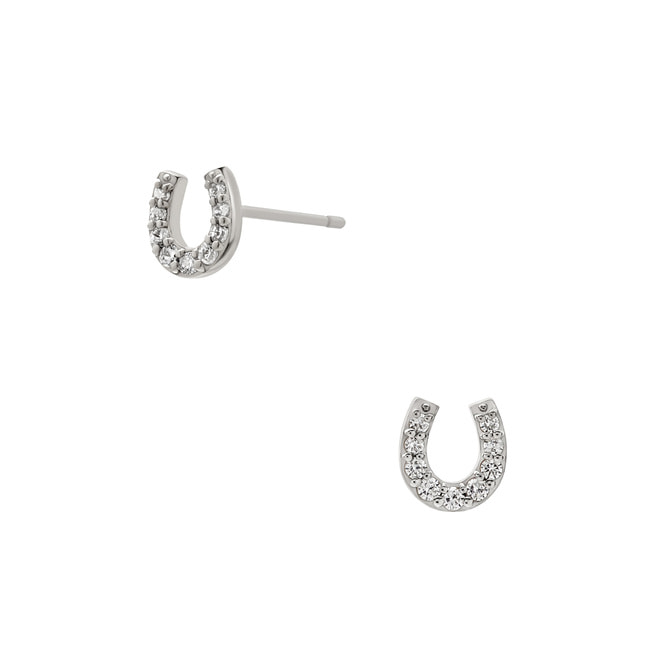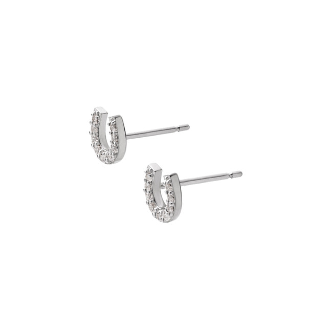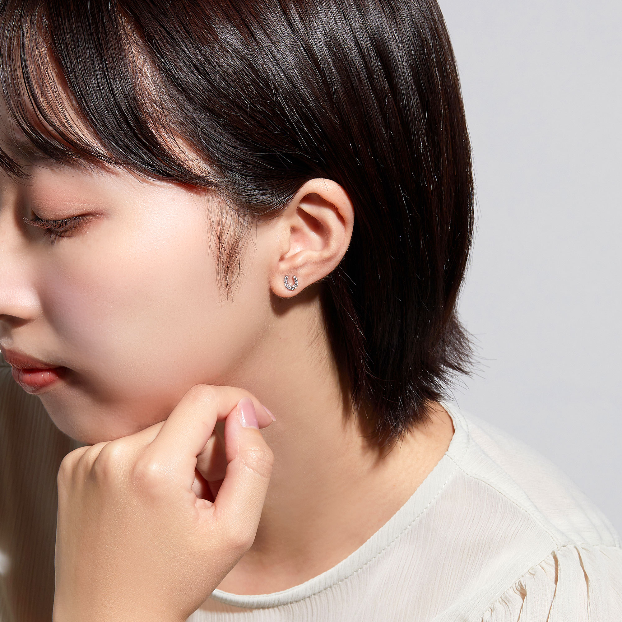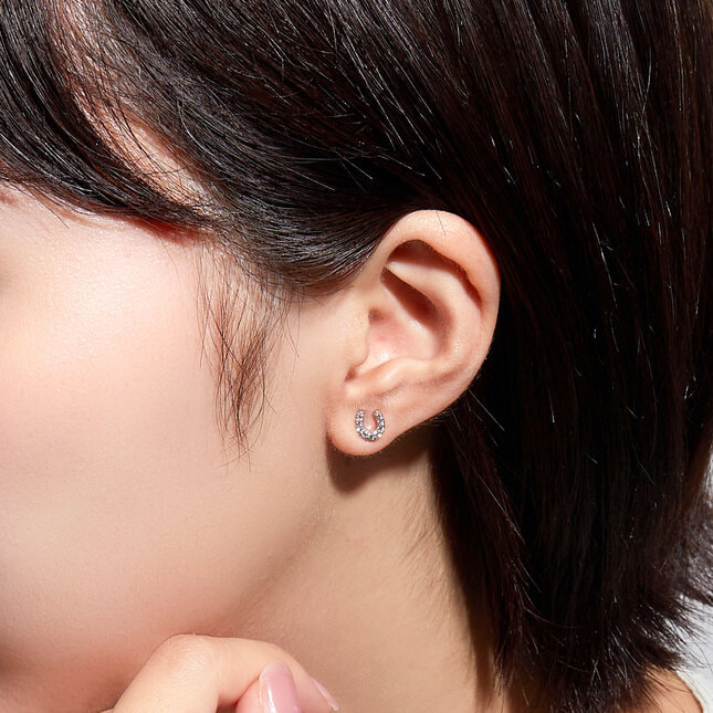 キュービックジルコニアのきらめきでラインを描いたような、ホースシュー(馬蹄)モチーフのピアス。