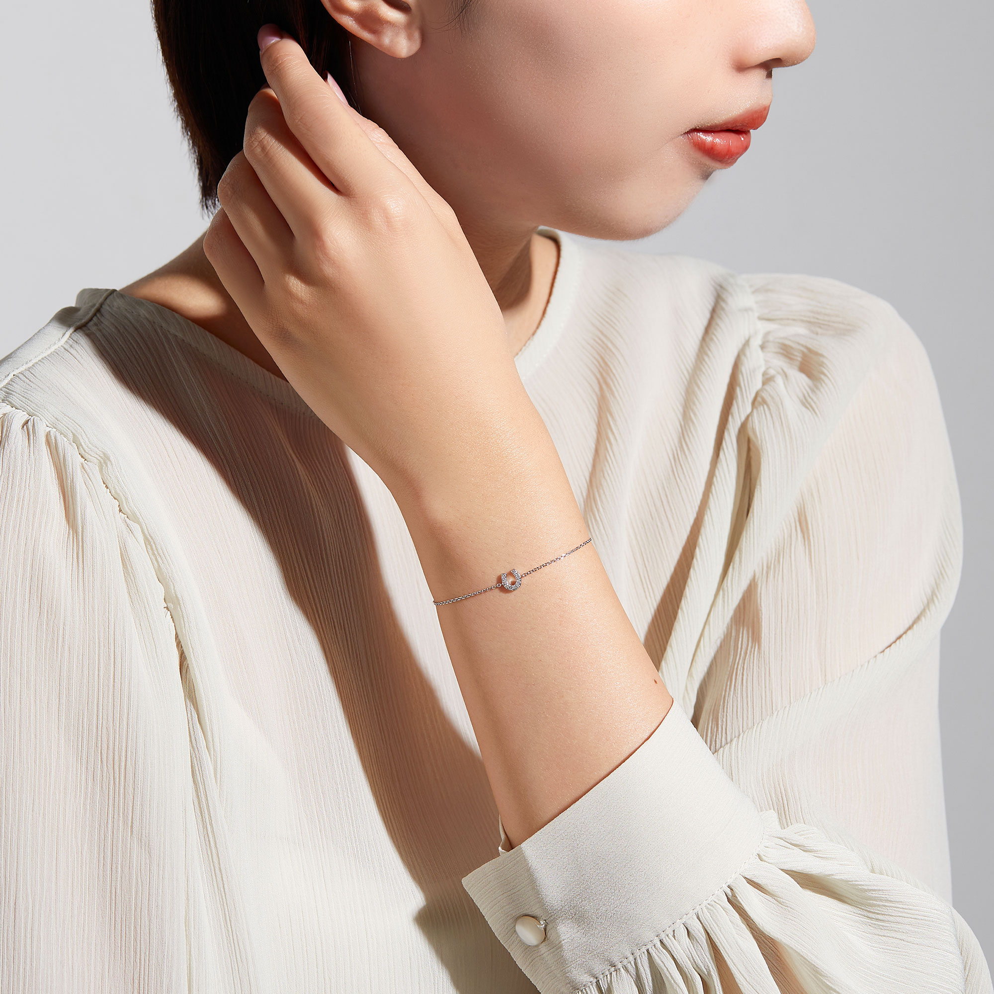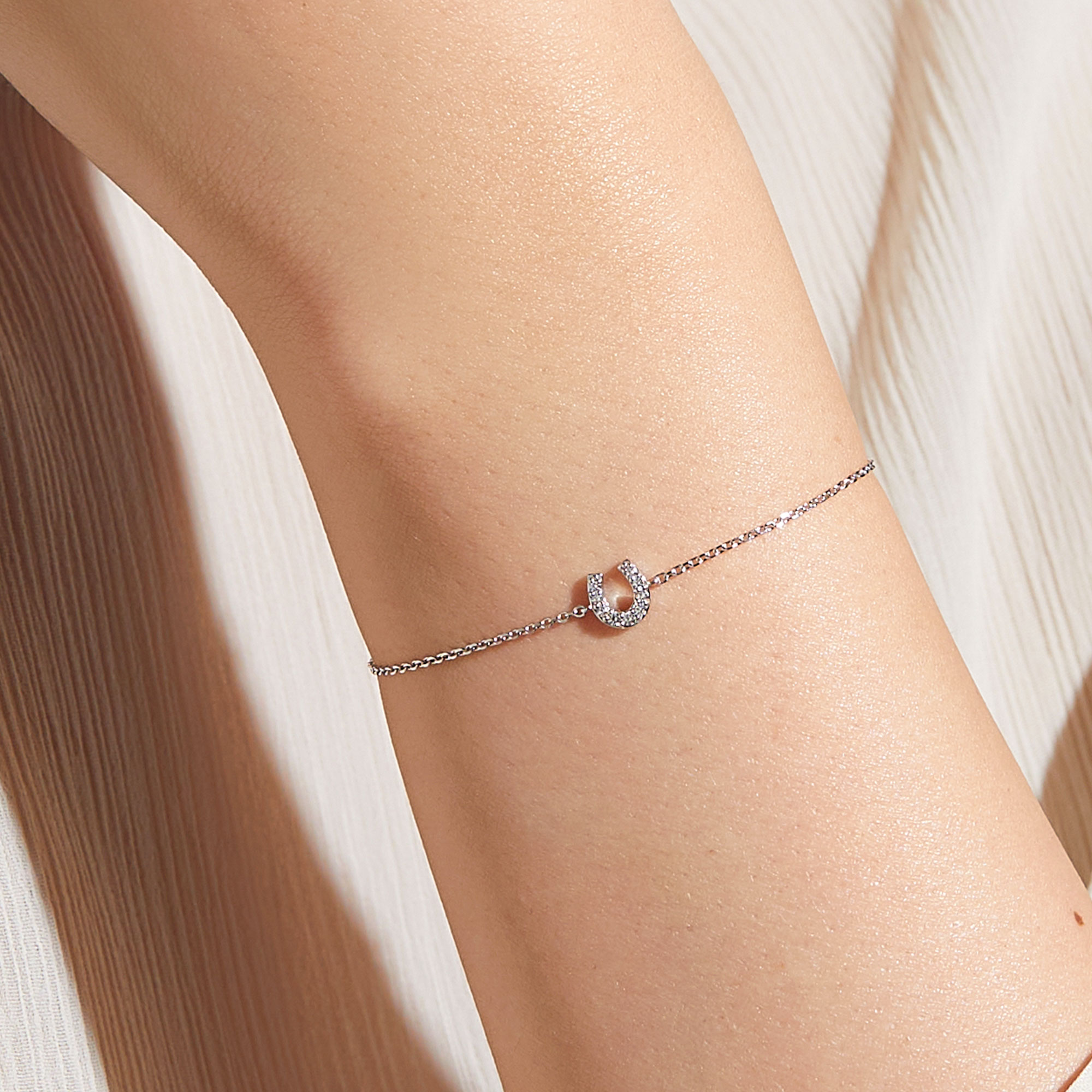 キュービックジルコニアのきらめきでラインを描いたような、ホースシュー(馬蹄)モチーフのブレスレット。