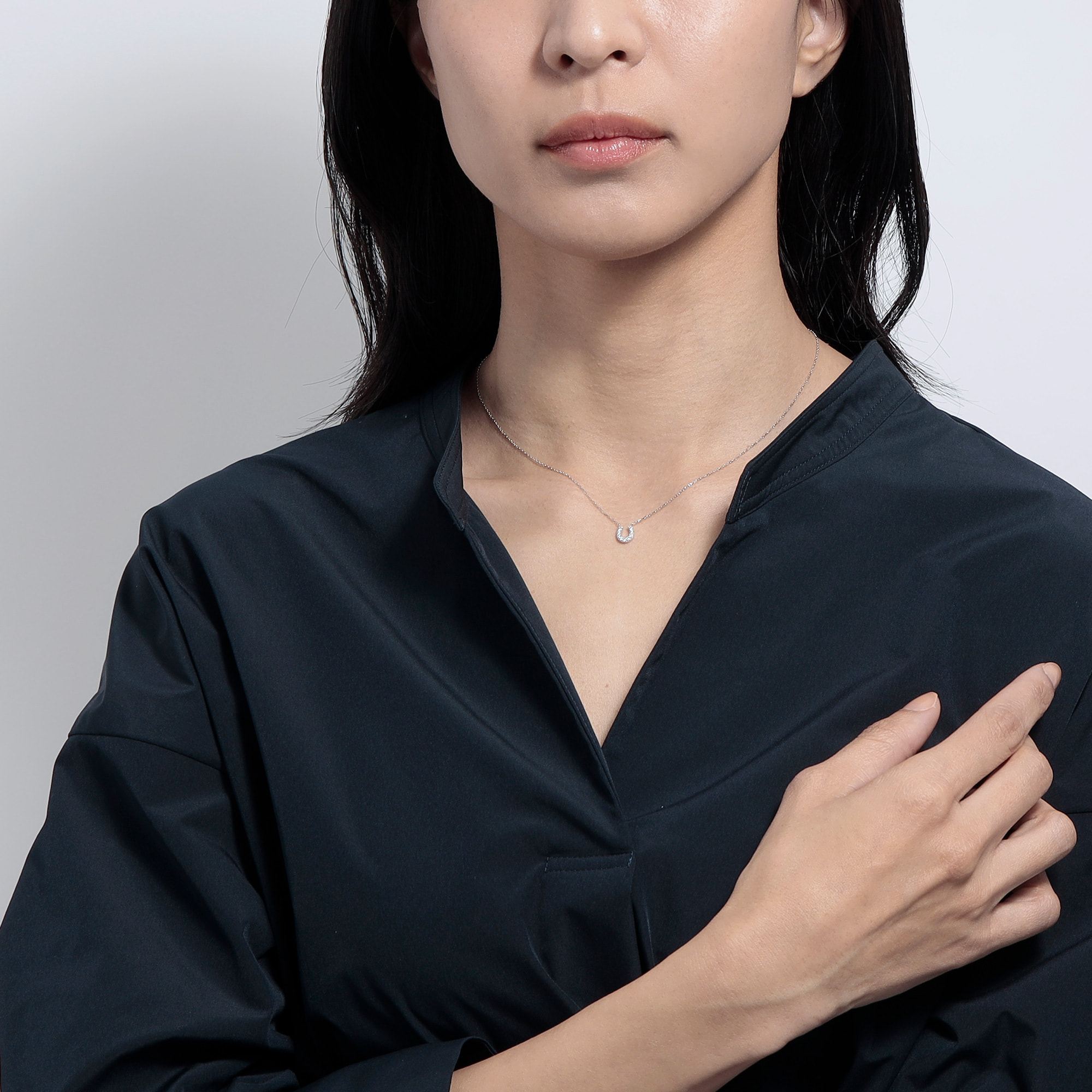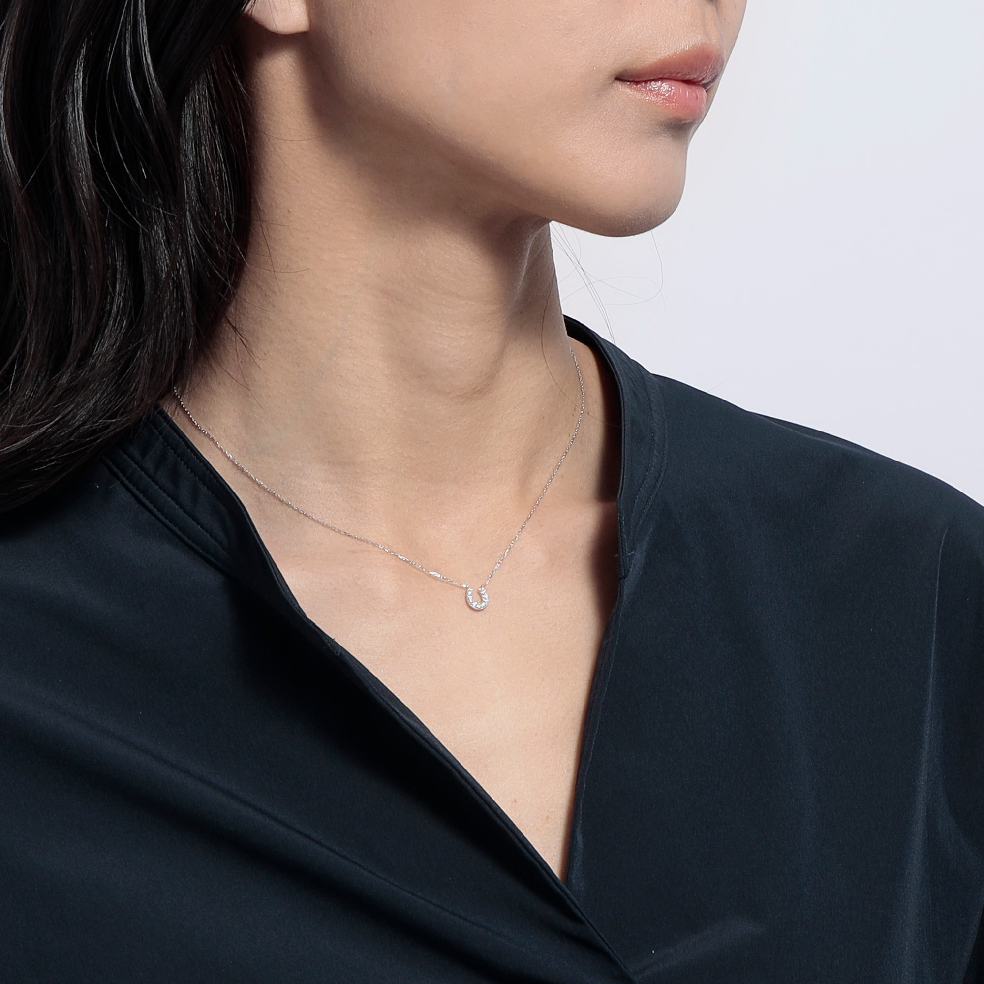 キュービックジルコニアのきらめきでラインを描いたような、ホースシュー(馬蹄)モチーフのネックレス。