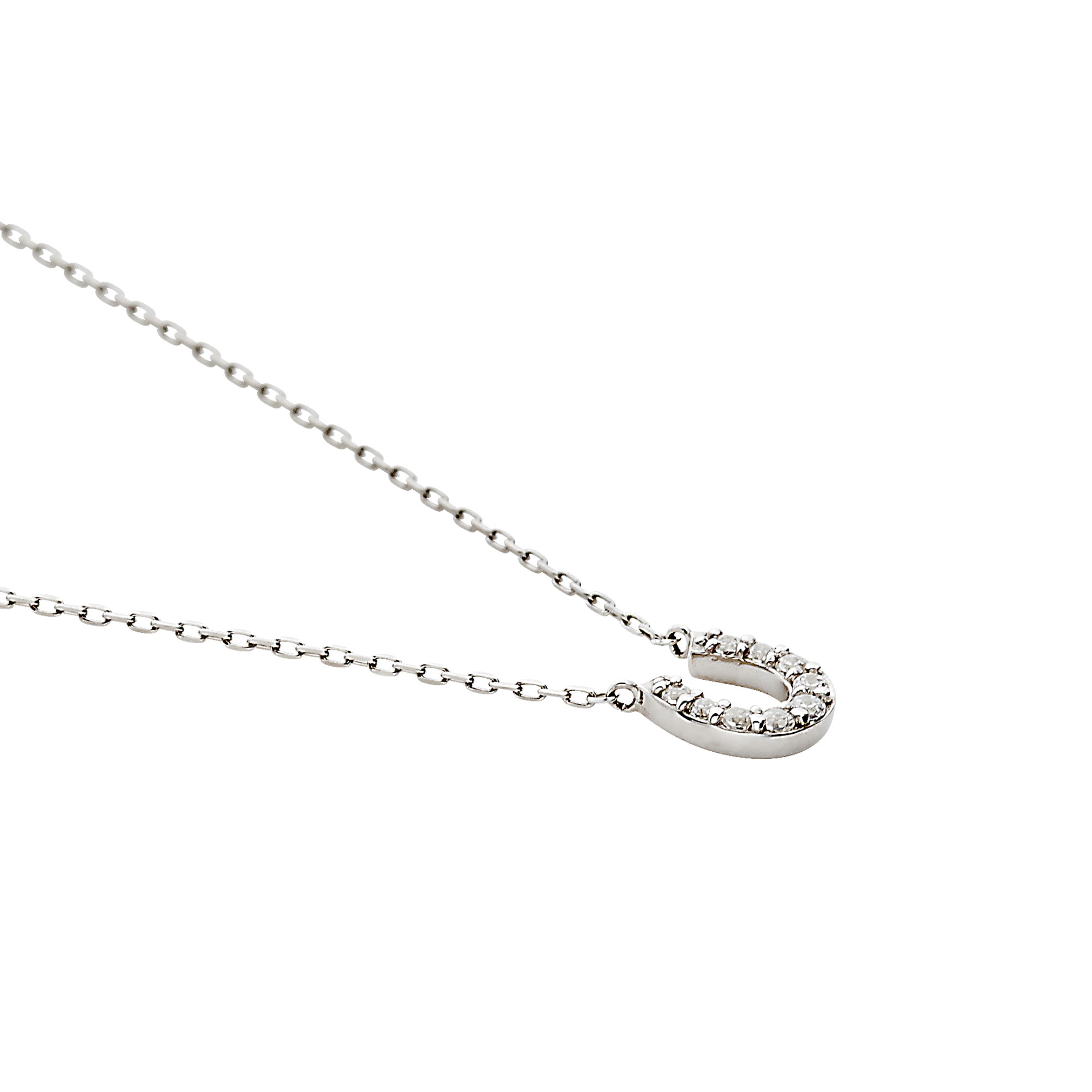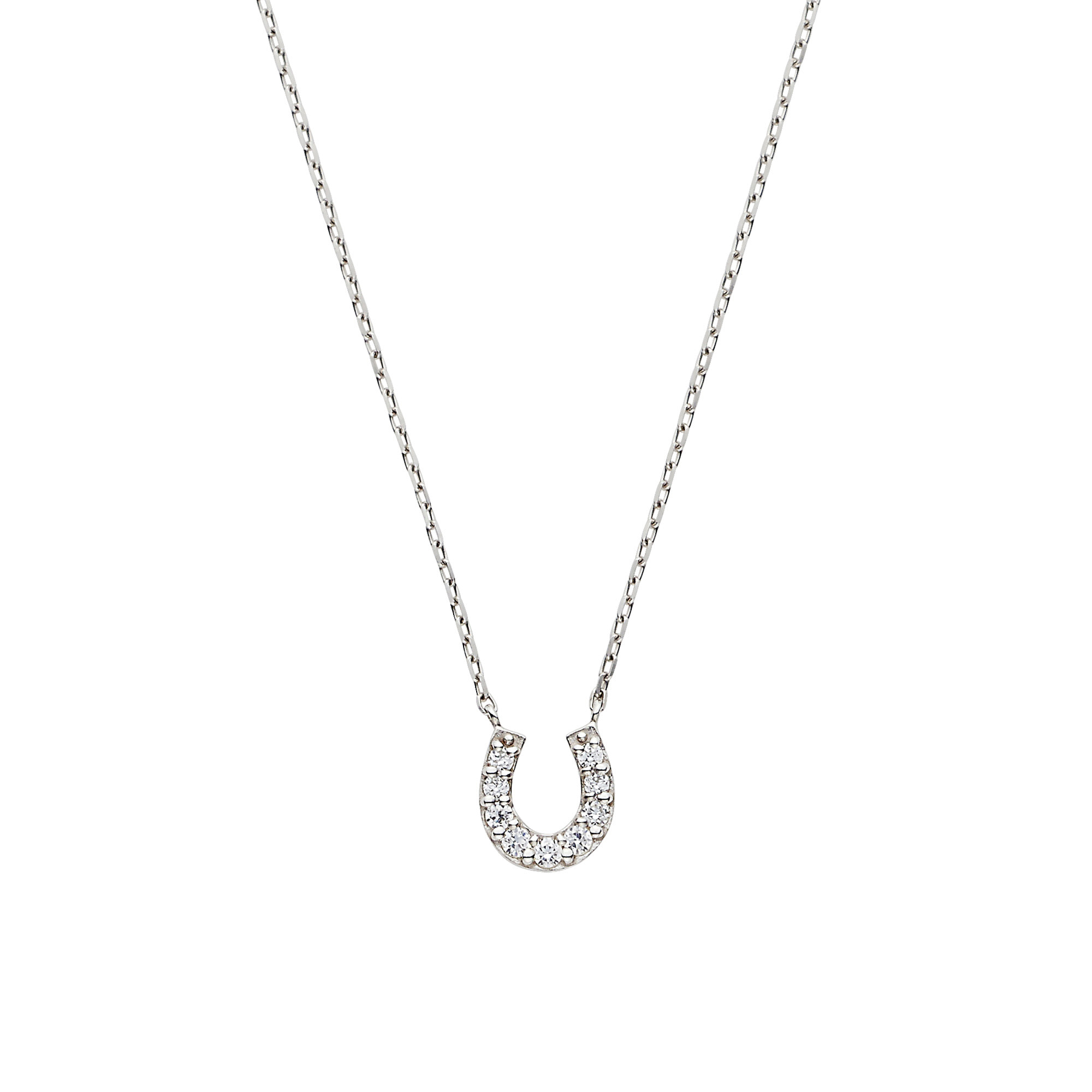 キュービックジルコニアのきらめきでラインを描いたような、ホースシュー(馬蹄)モチーフのネックレス。