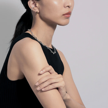 フープの後ろ側がピアスキャッチの代わりとなる為、前から見ても後ろから見てもシンプルで無駄のないデザインが魅力。