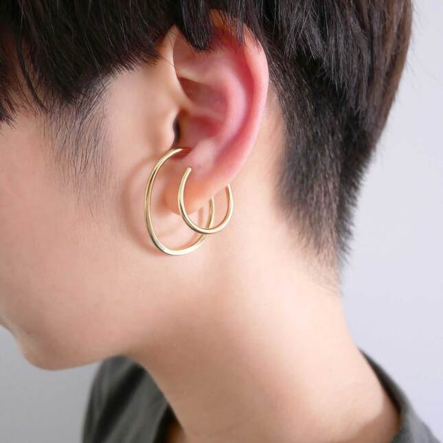 ひと筆書きの自由な曲線からデザインされたイヤーカフ(左耳用)。