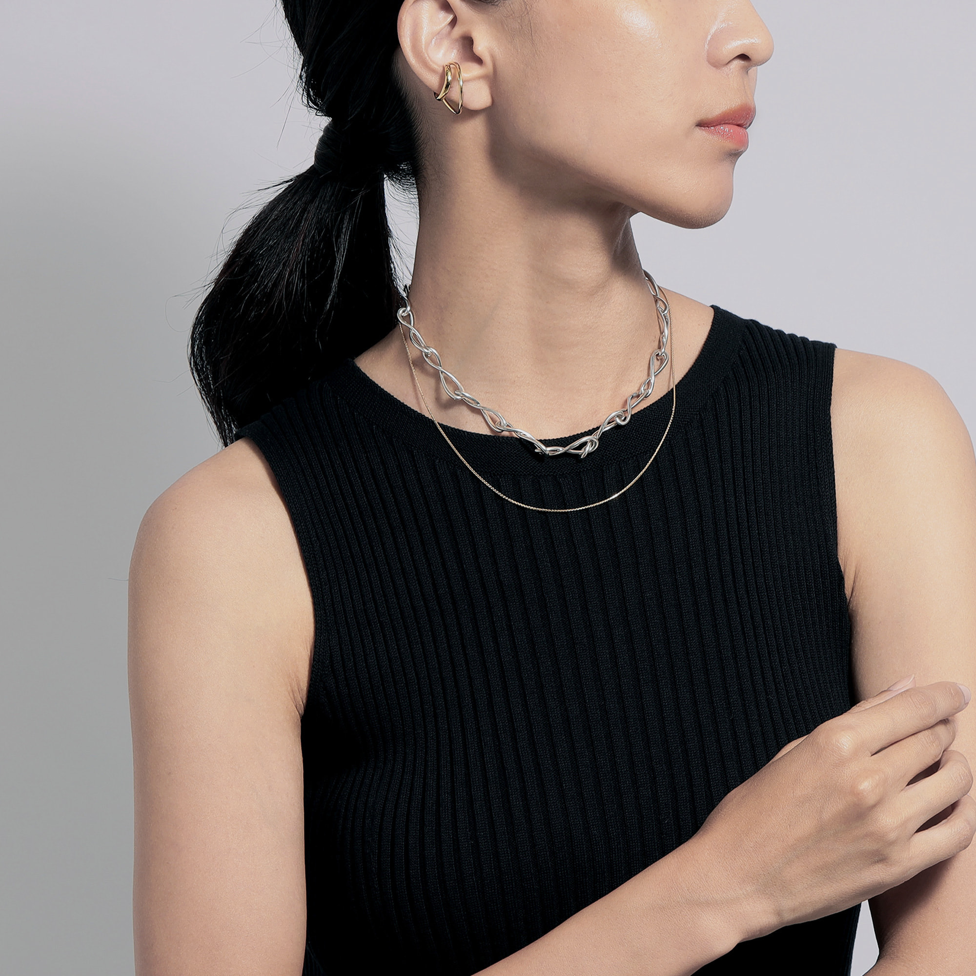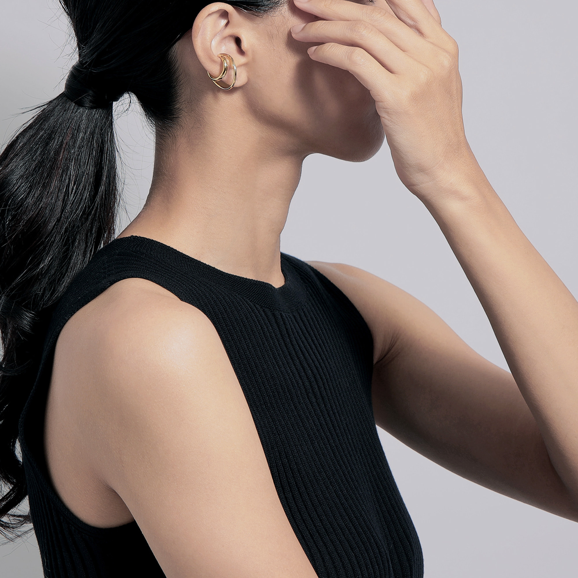 2本の太さの違う柔らかなラインが特徴のイヤーカフ。