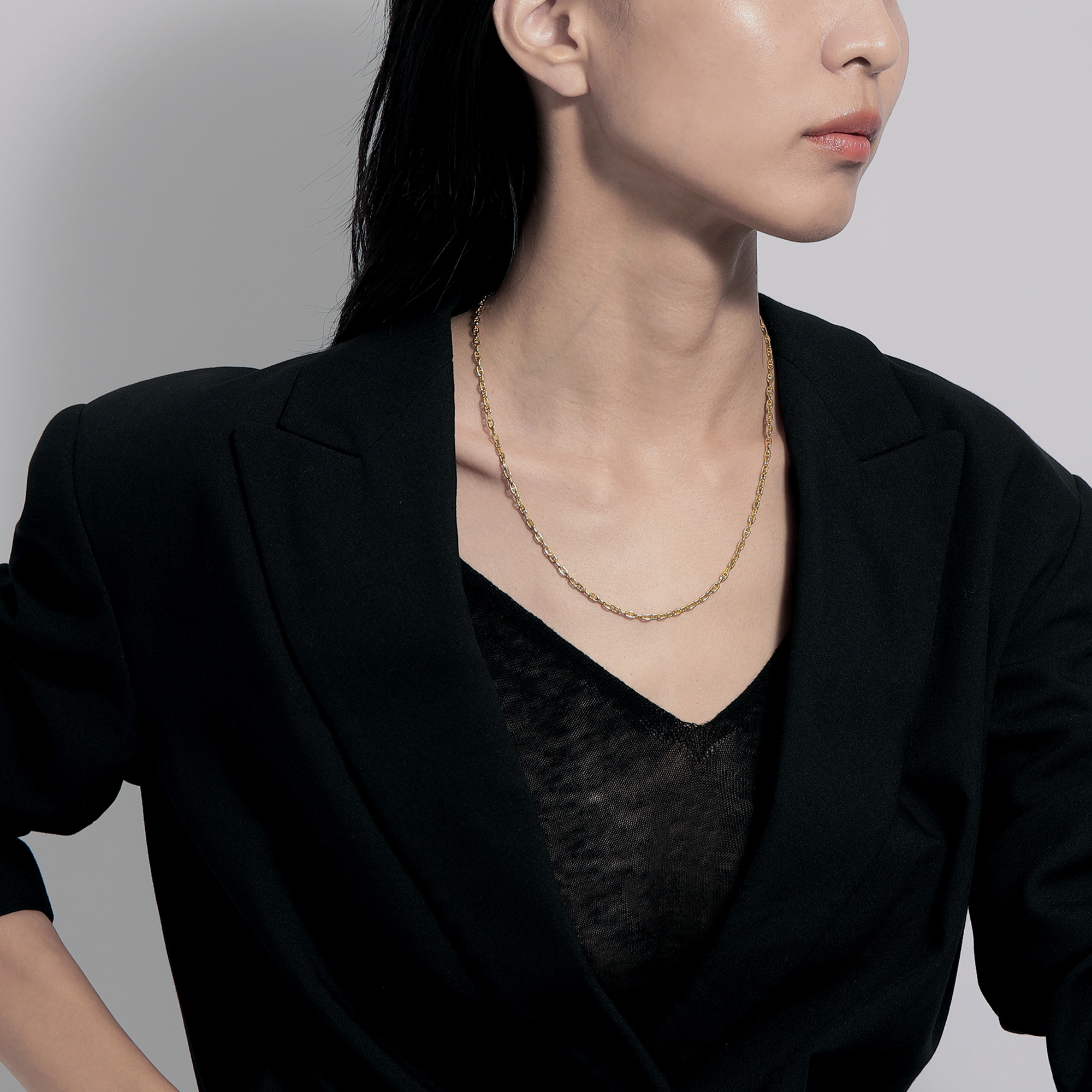 ベーシックなサイズのチェーンをチョイスしたチェーンネックレス。