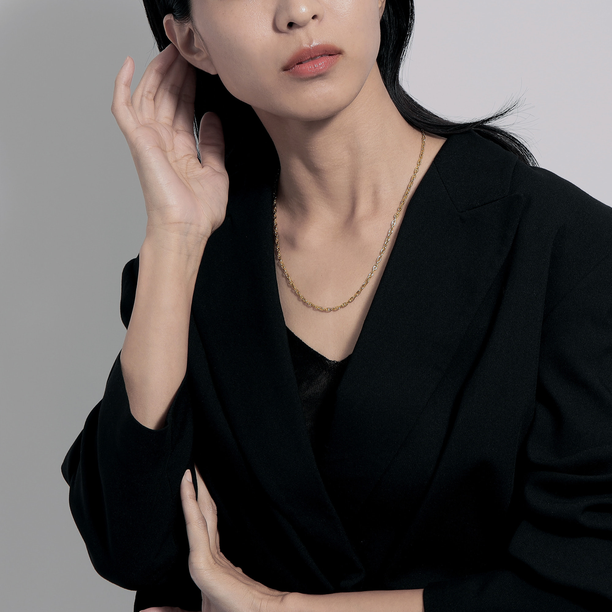 他のネックレスとレイヤードしたり、1本でサラッとつけたり、と使い勝手の良いネックレスです。