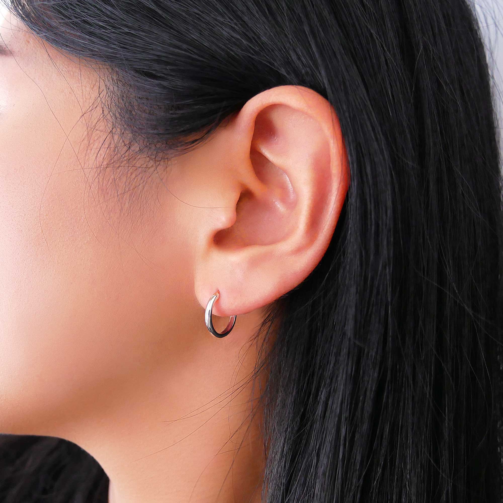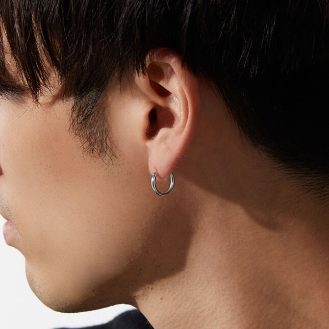基本とも言えるフォルムを追求したシンプルなシルバーのフープピアス。
