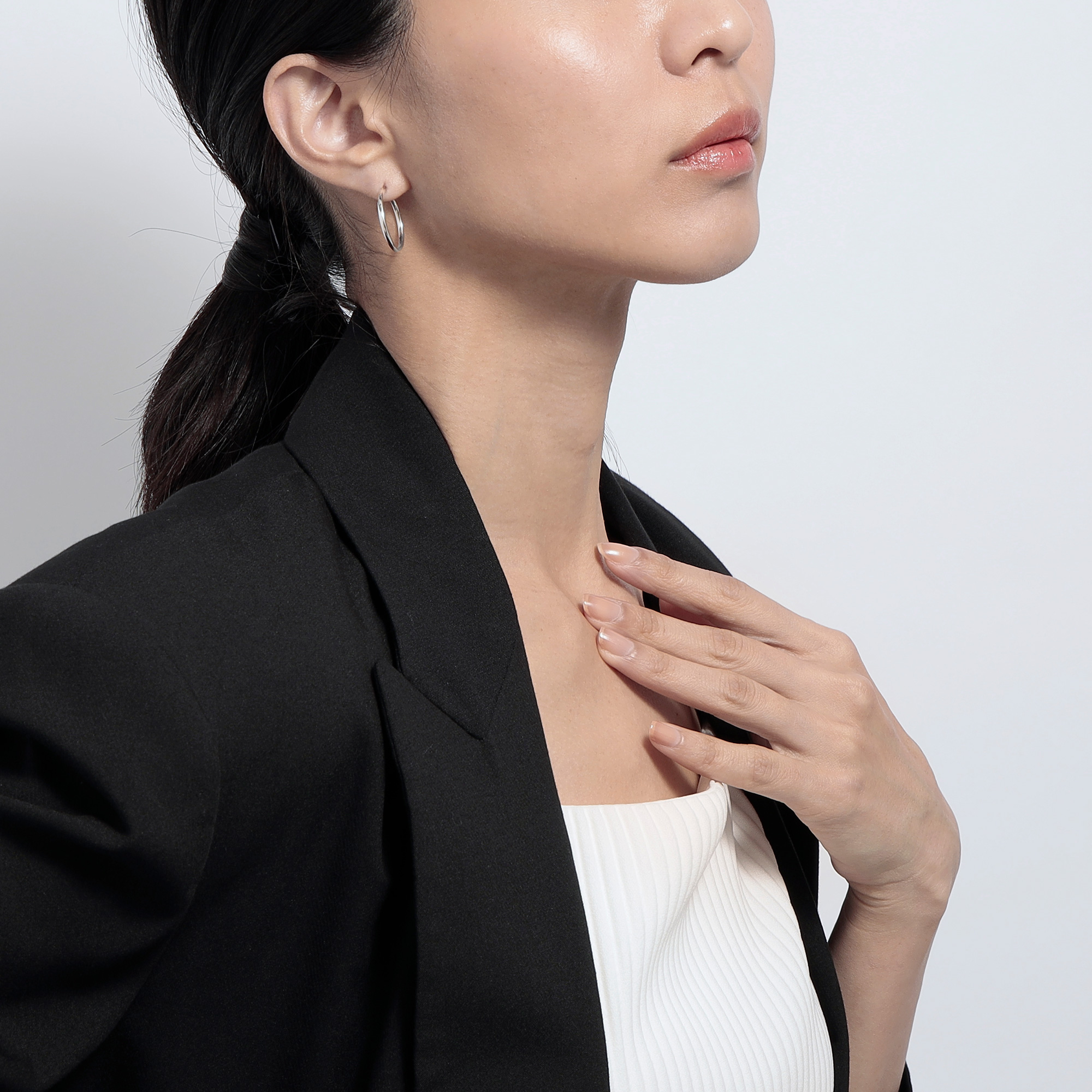 他のジュエリーともコーディネートしやすい汎用性のあるサイズ感のフープピアスは、一本の細すぎない地金の線が凛とした存在感を放ちます。