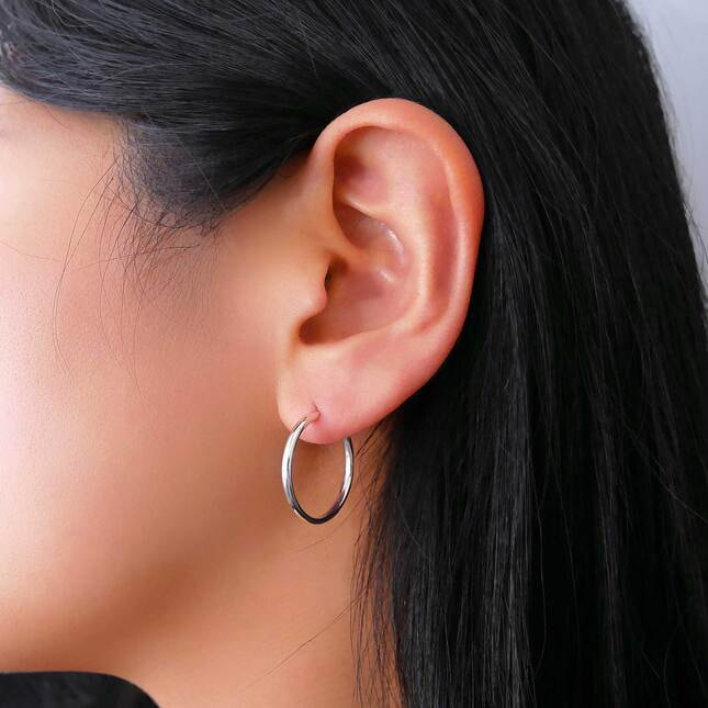 基本とも言えるフォルムを追求したシンプルなシルバーのフープピアス。