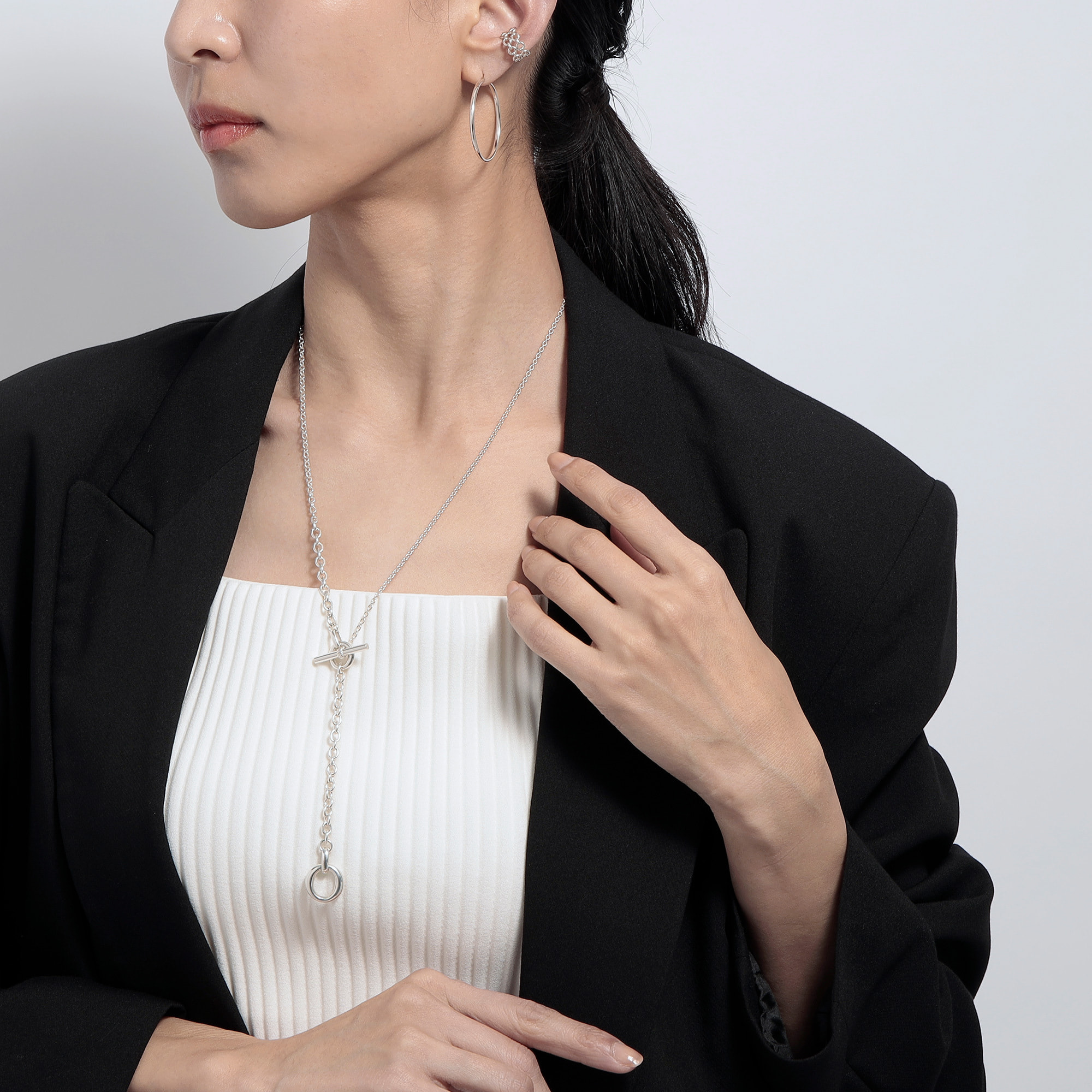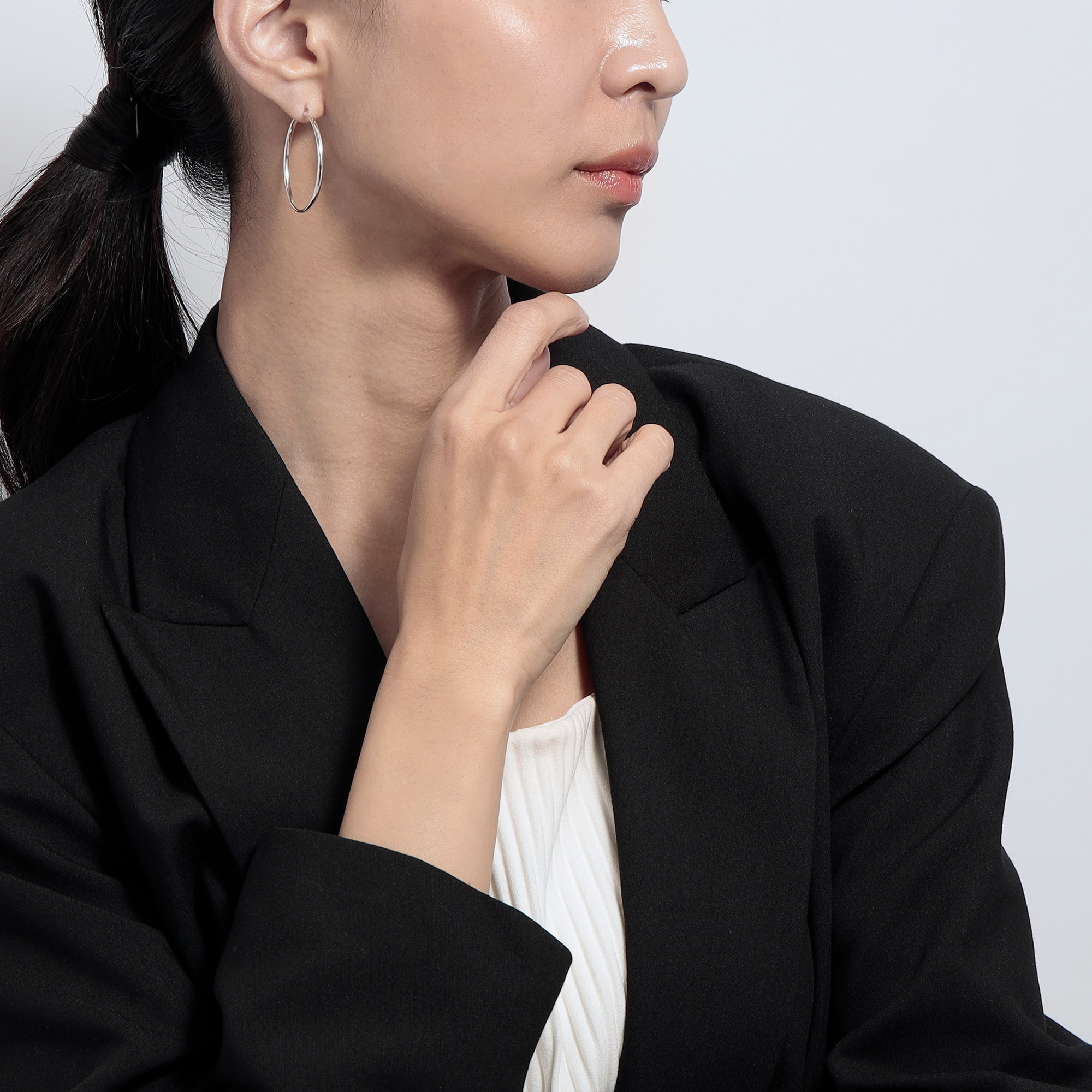 基本とも言えるフォルムを追求したシンプルなシルバーのフープピアス。