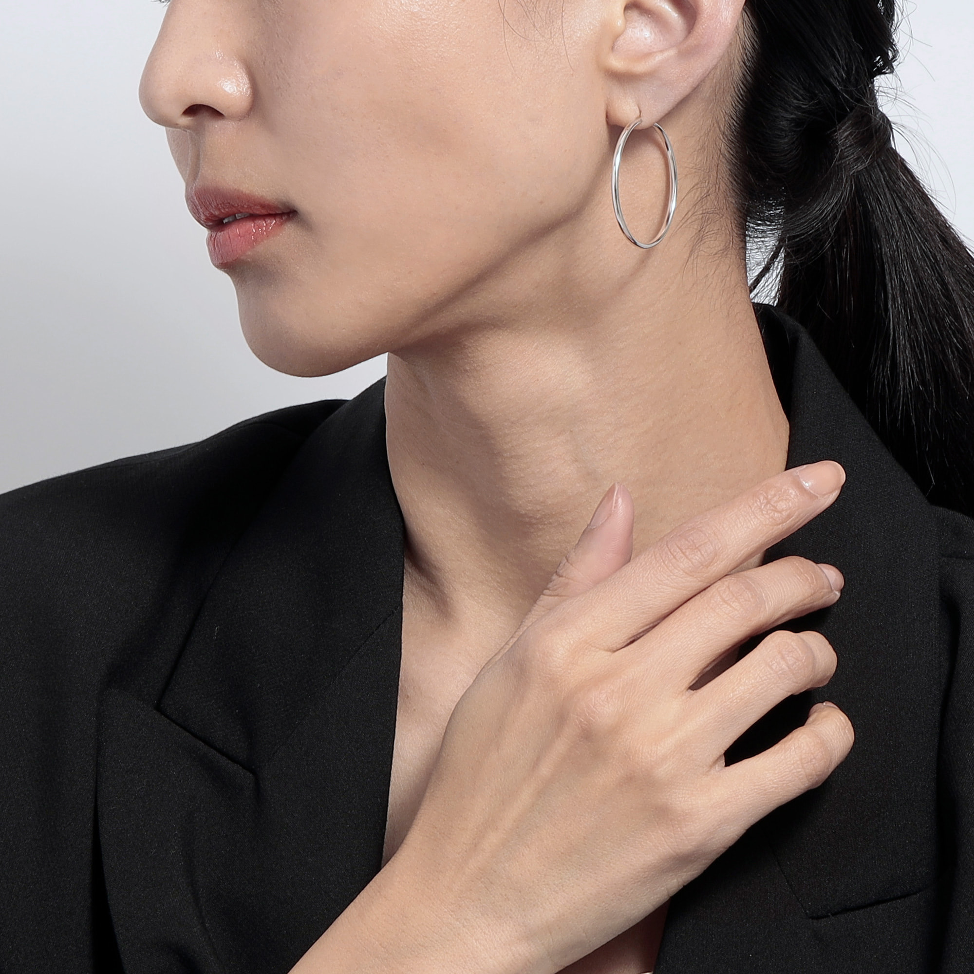 こだわりのフープサイズは、カジュアルになりすぎず、かつ存在感のあるサイズ。