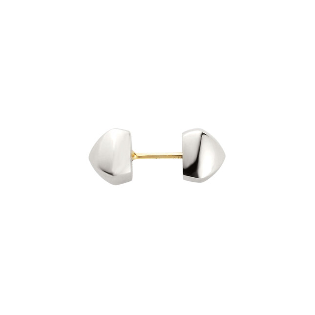 トップとキャッチが同じフォルムなので、複数のピアスホールがあれば耳の上の方に着けたり、アップヘアスタイルで耳の裏側もポイントとなるデザインに。
