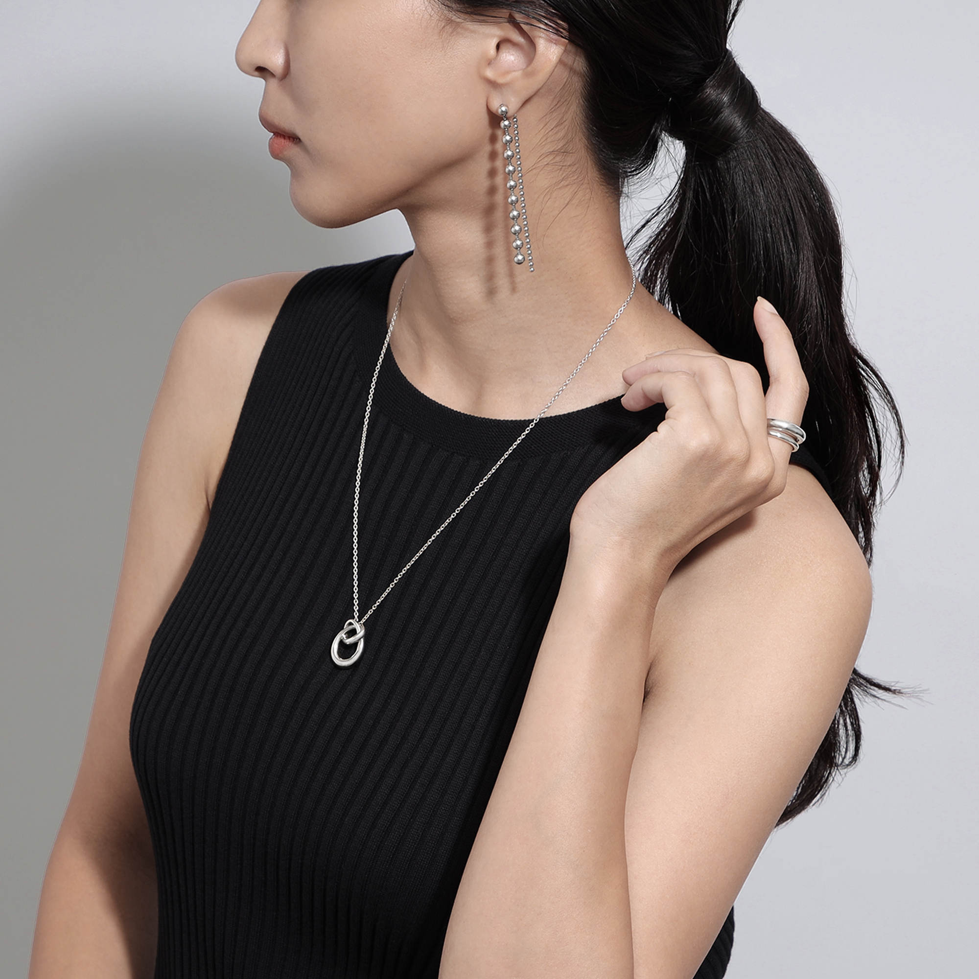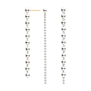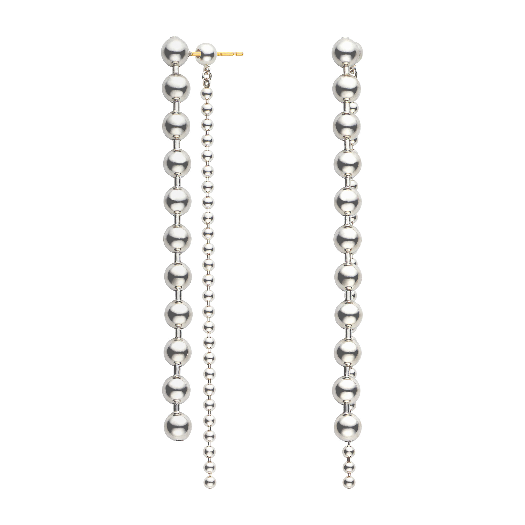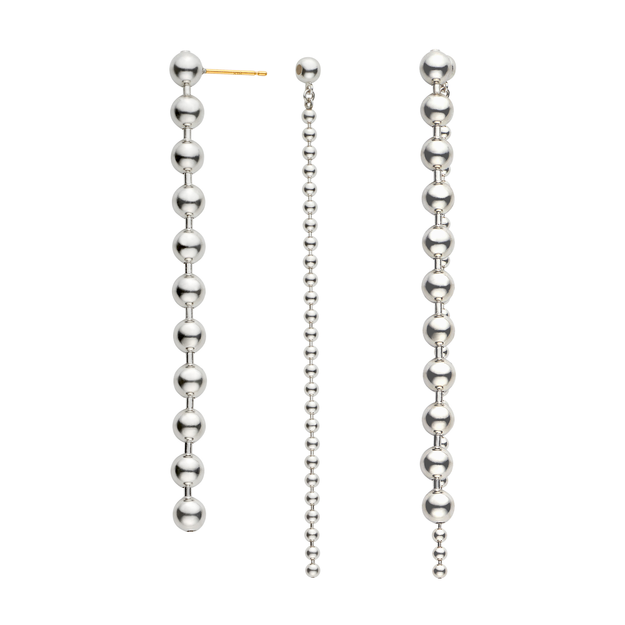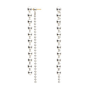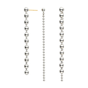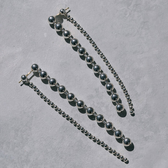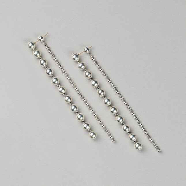 大きさの違うボールチェーンが揺れ、リズム感のある表情を生むデザイン。