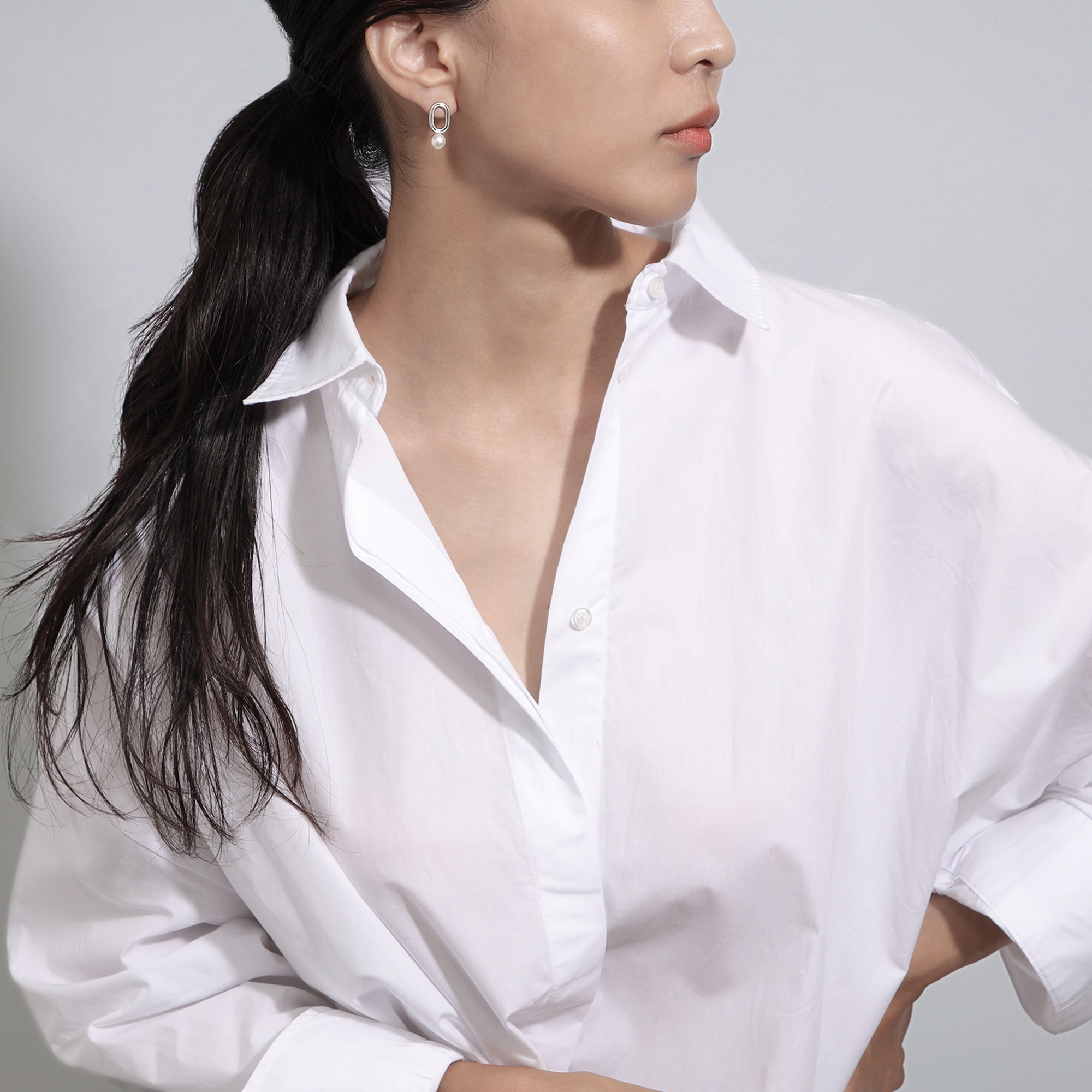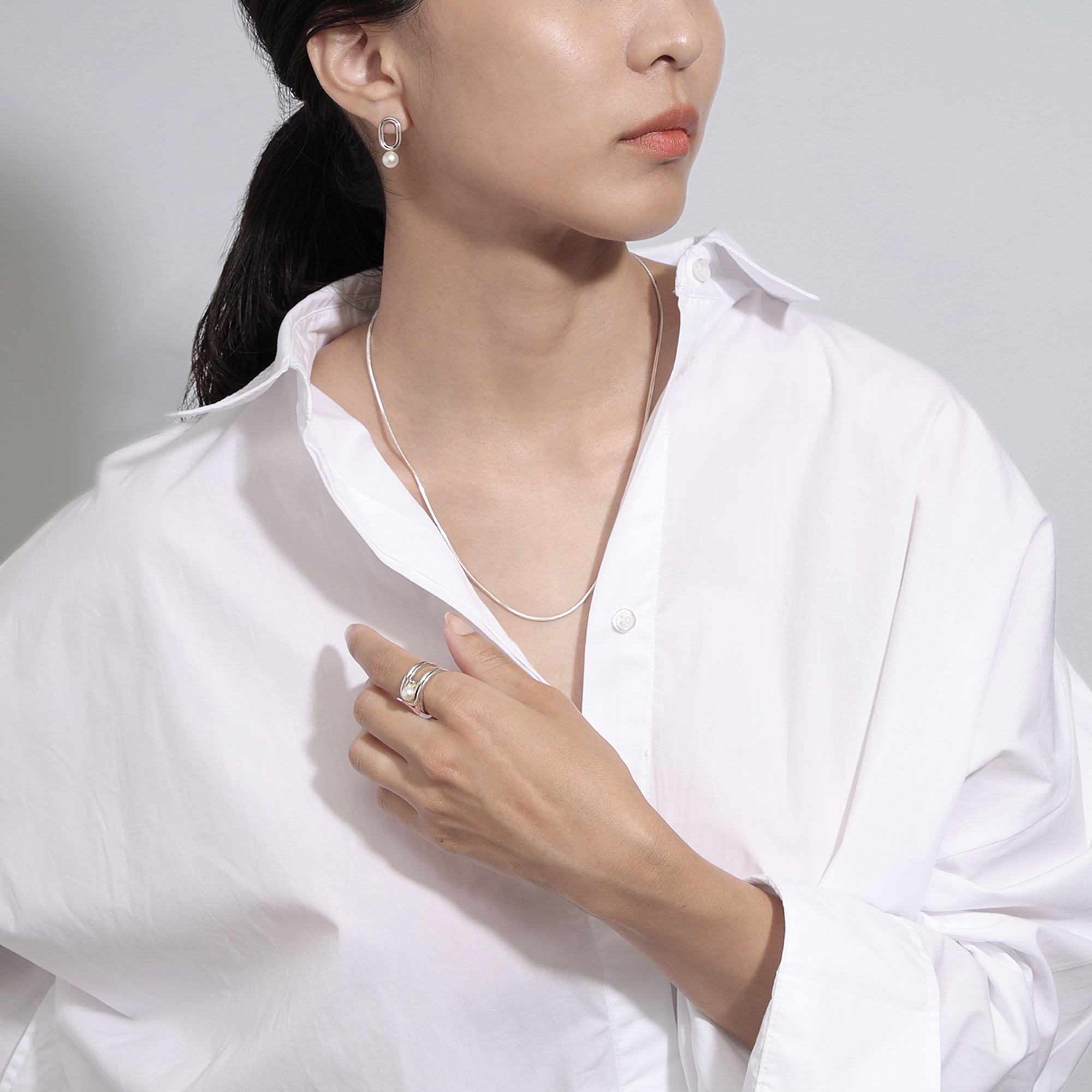 柔らかなシルバーの光沢とパールのてりが、モダンなデザインの中にも優しい雰囲気を演出します。