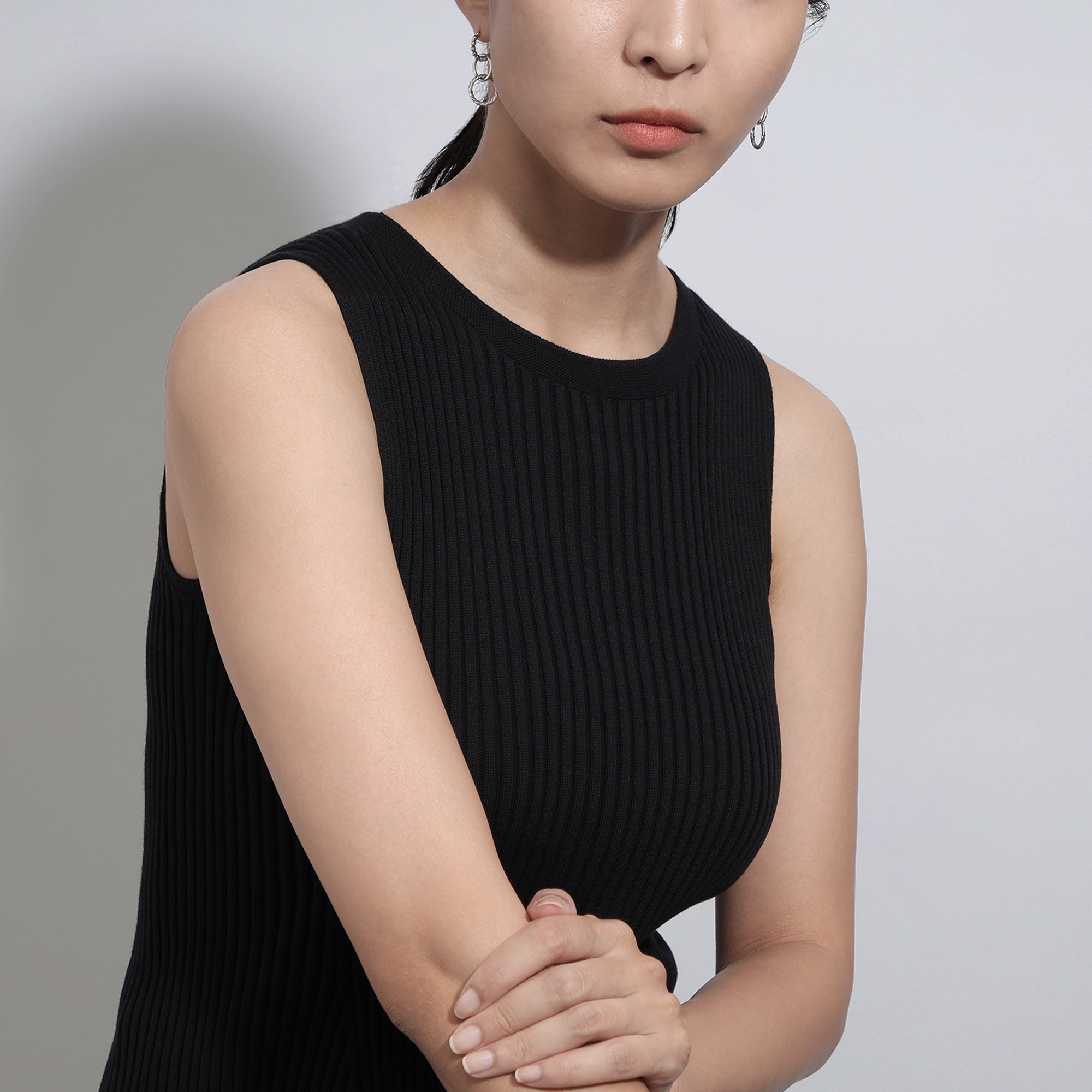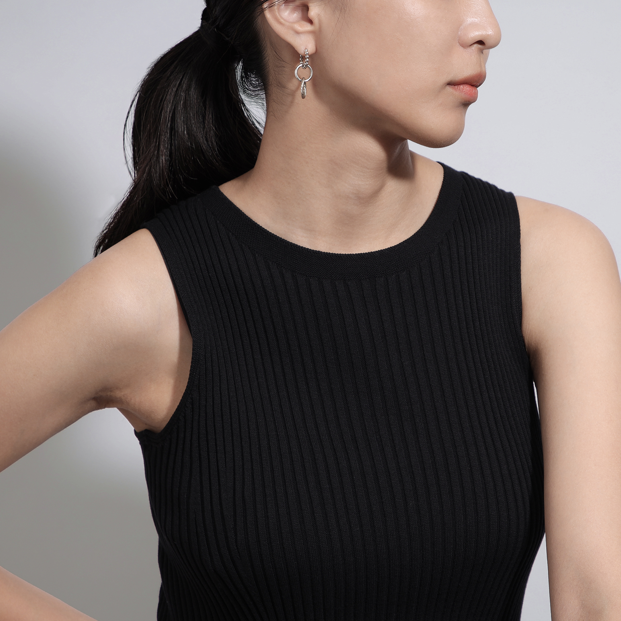 ボールチェーンをイメージして作られたピアスは、艶やかですっきりとした表情が魅力。