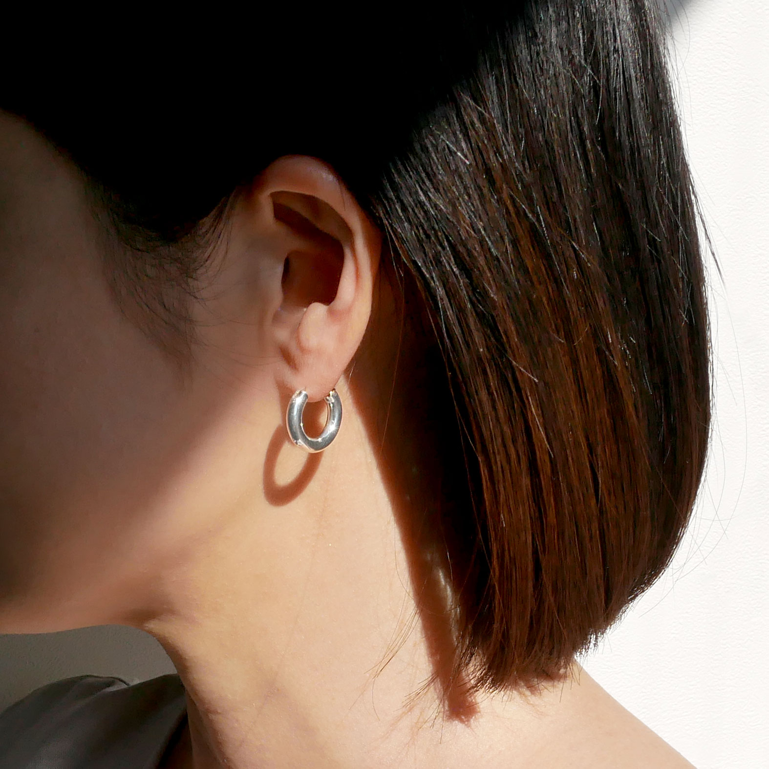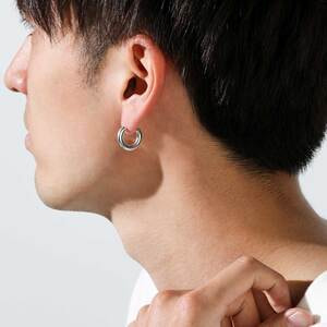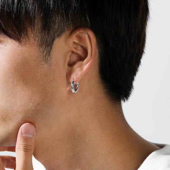 シンプルなデザインながらたっぷりと使った地金で存在感のあるフープ型シングルピアス。