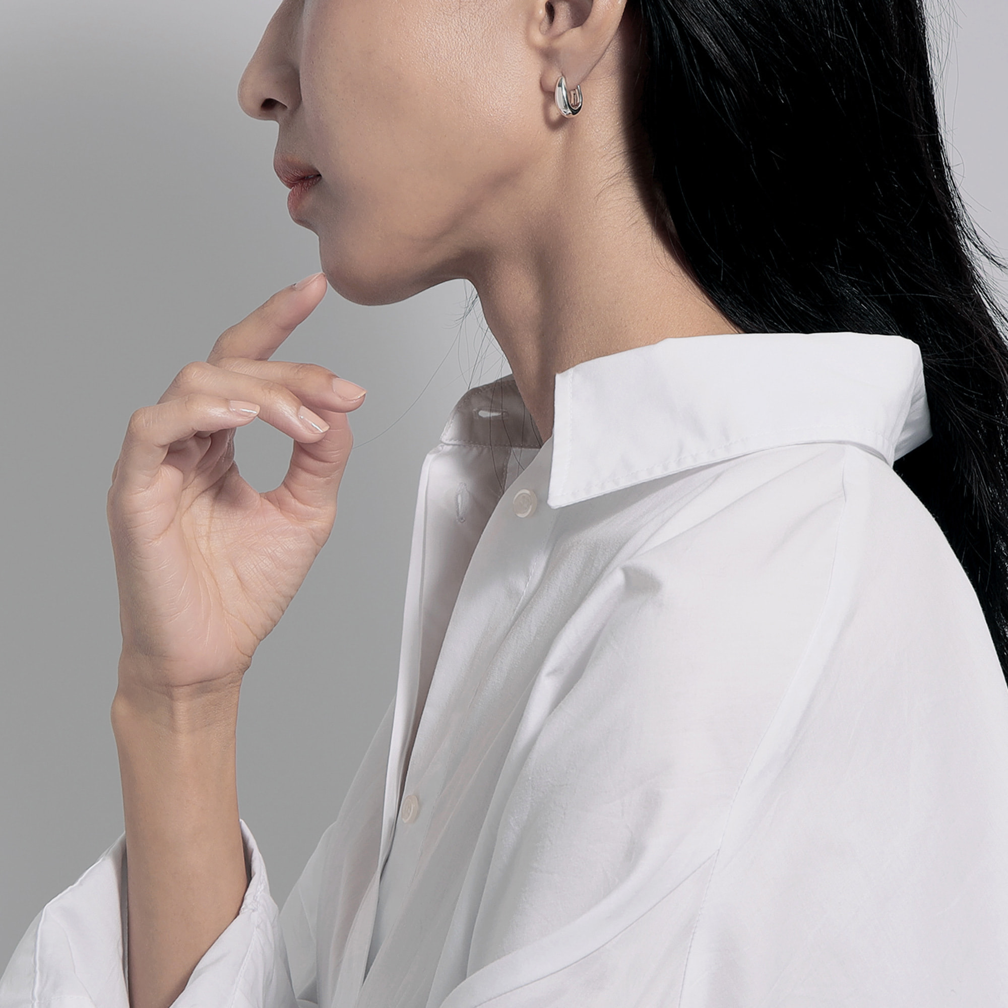 フープの後ろ側がピアスキャッチの代わりとなる為、前から見ても後ろから見てもシンプルで無駄のないデザインが魅力。