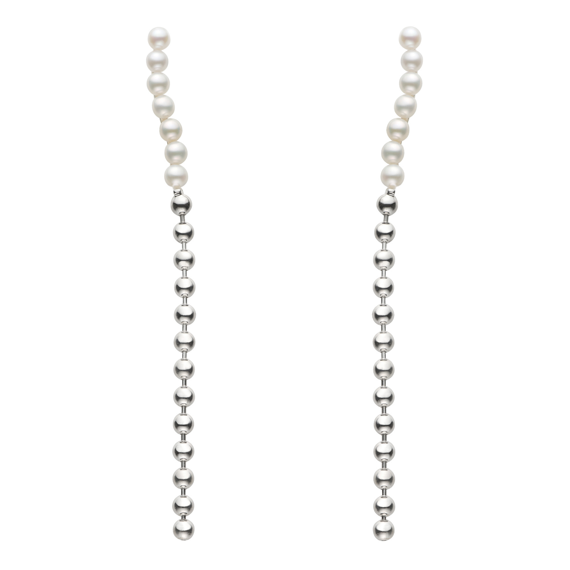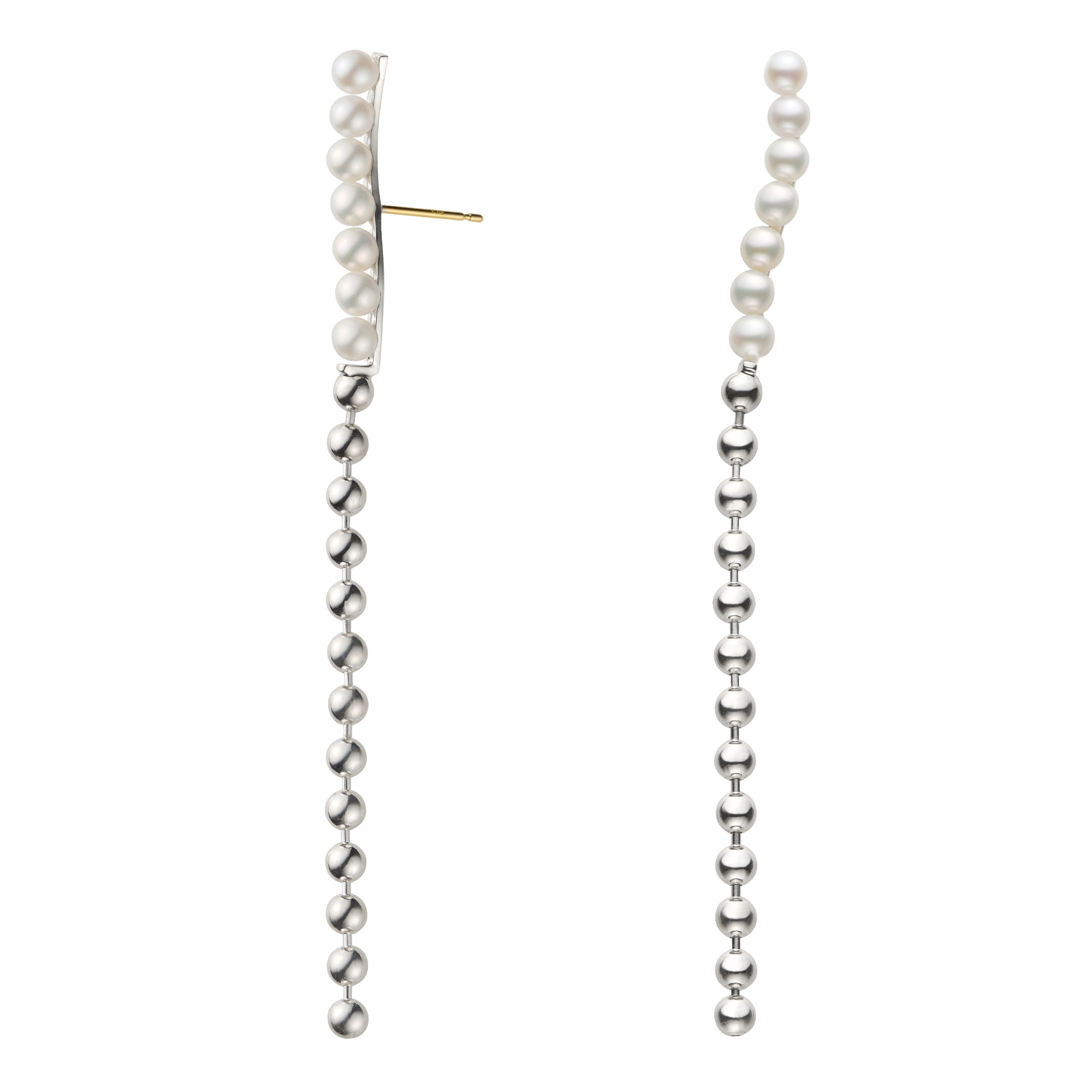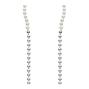 やわらかな曲線を描いたパールに同じサイズのボールチェーンを合わせた、素材のコントラストを楽しめるデザイン。