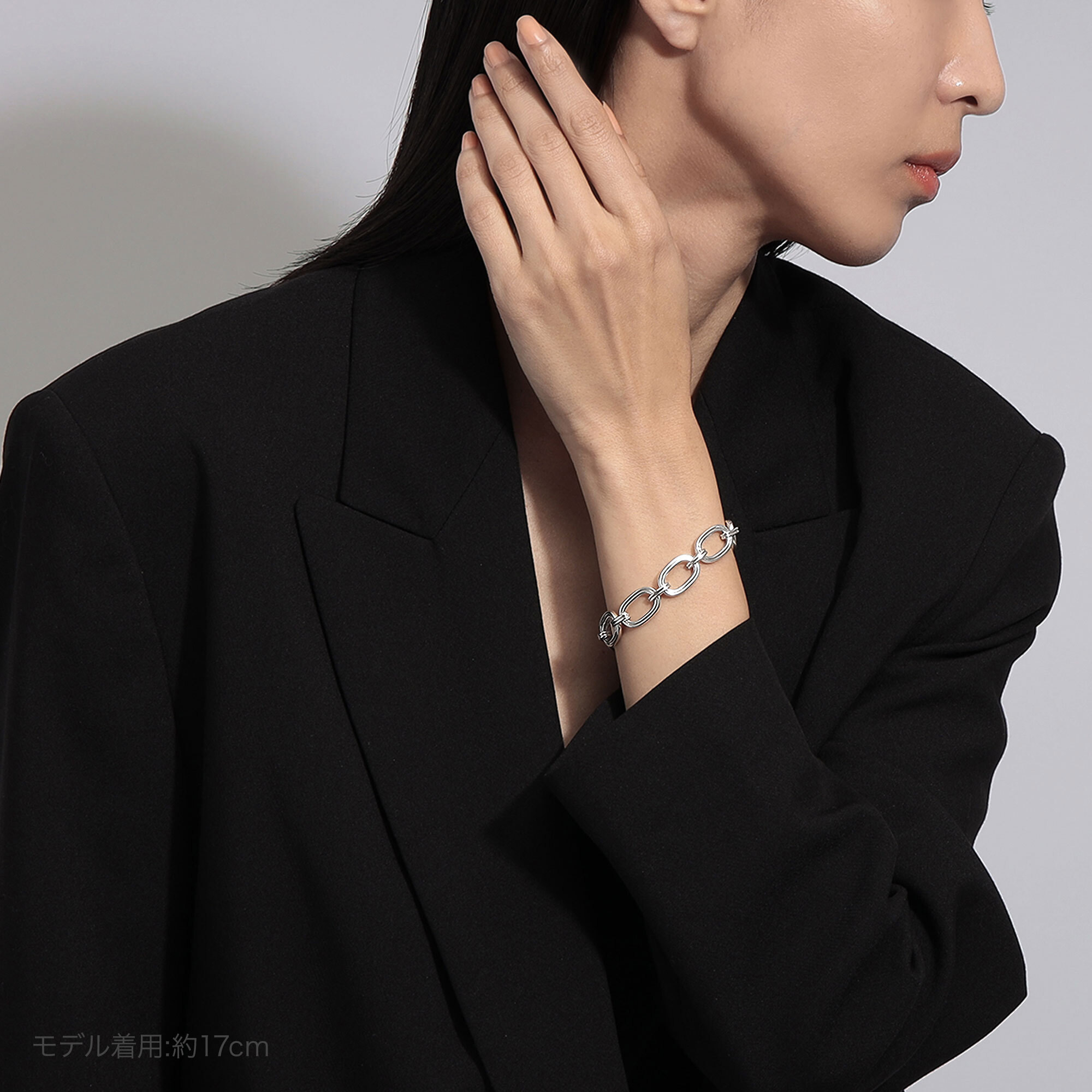 オリジナルチェーンのデザインと存在感は、コーディネートをひきしめるポイントにオススメです。