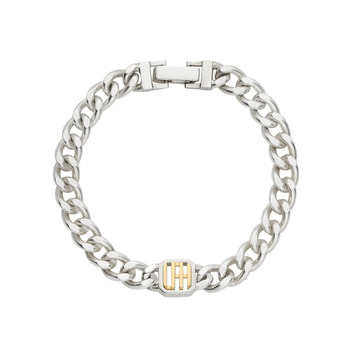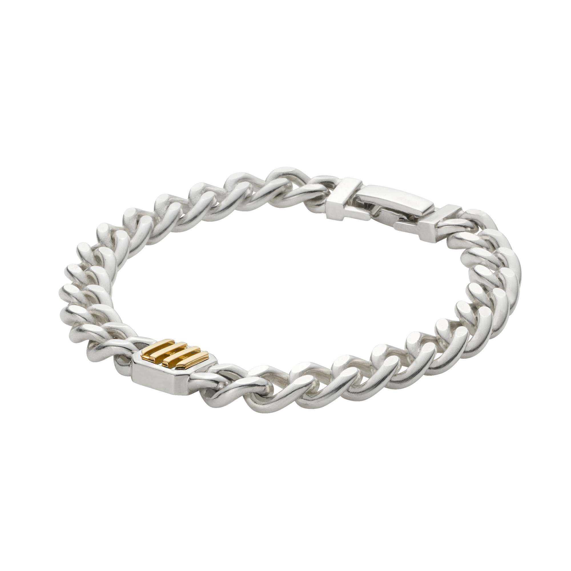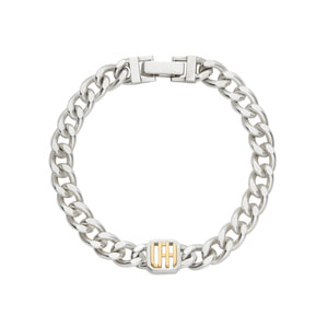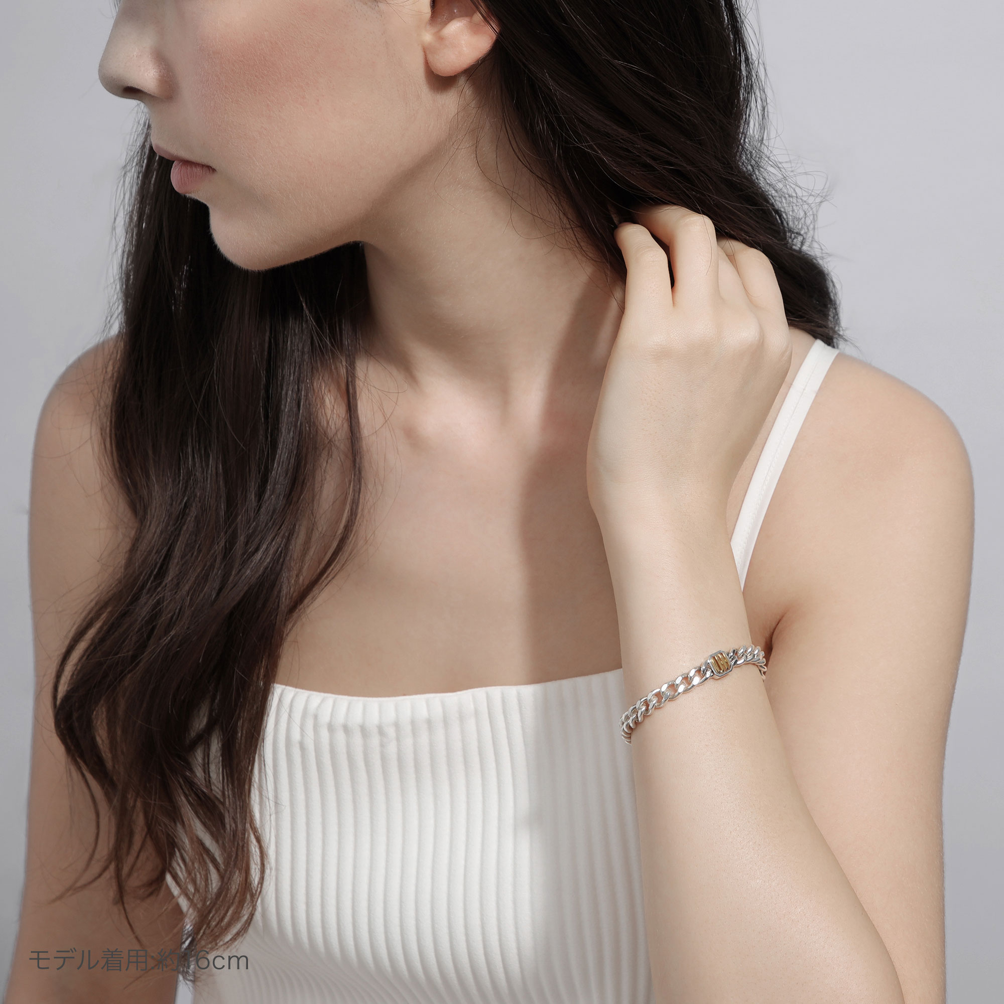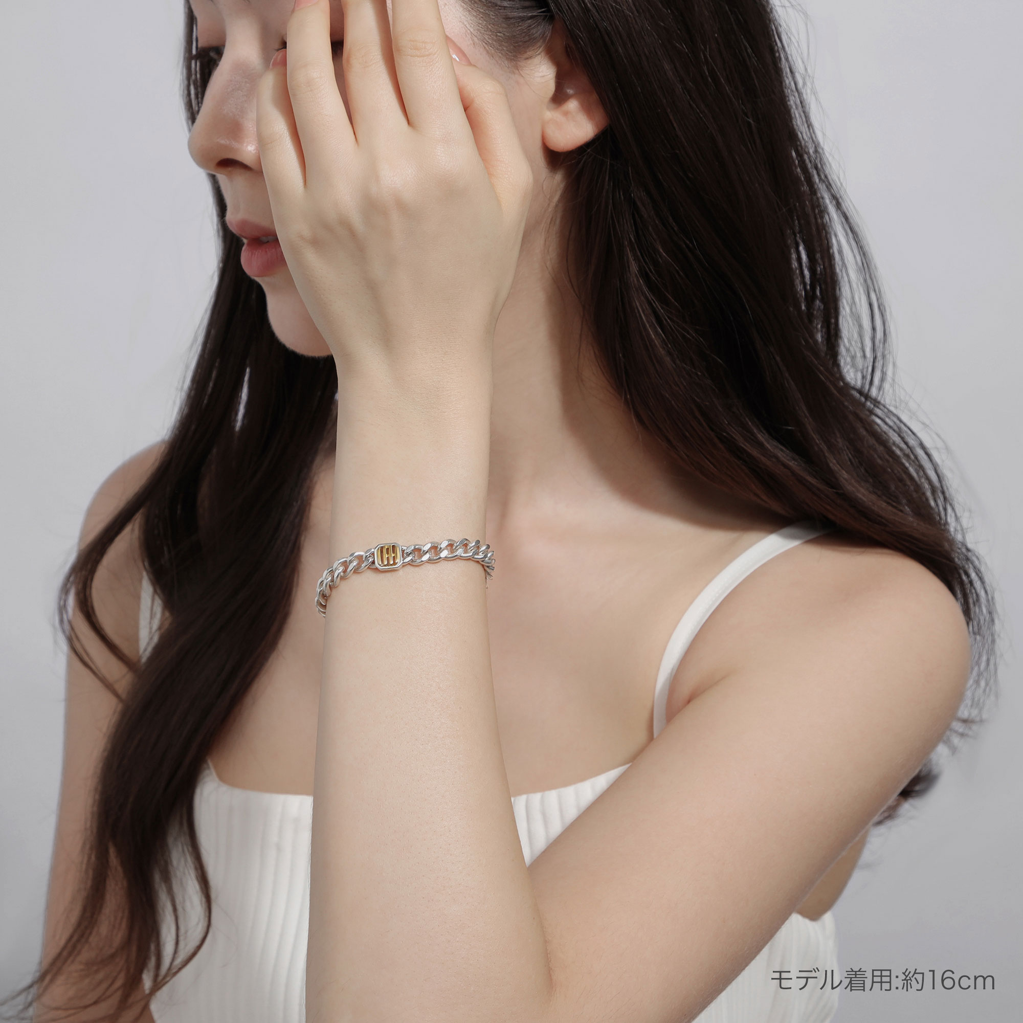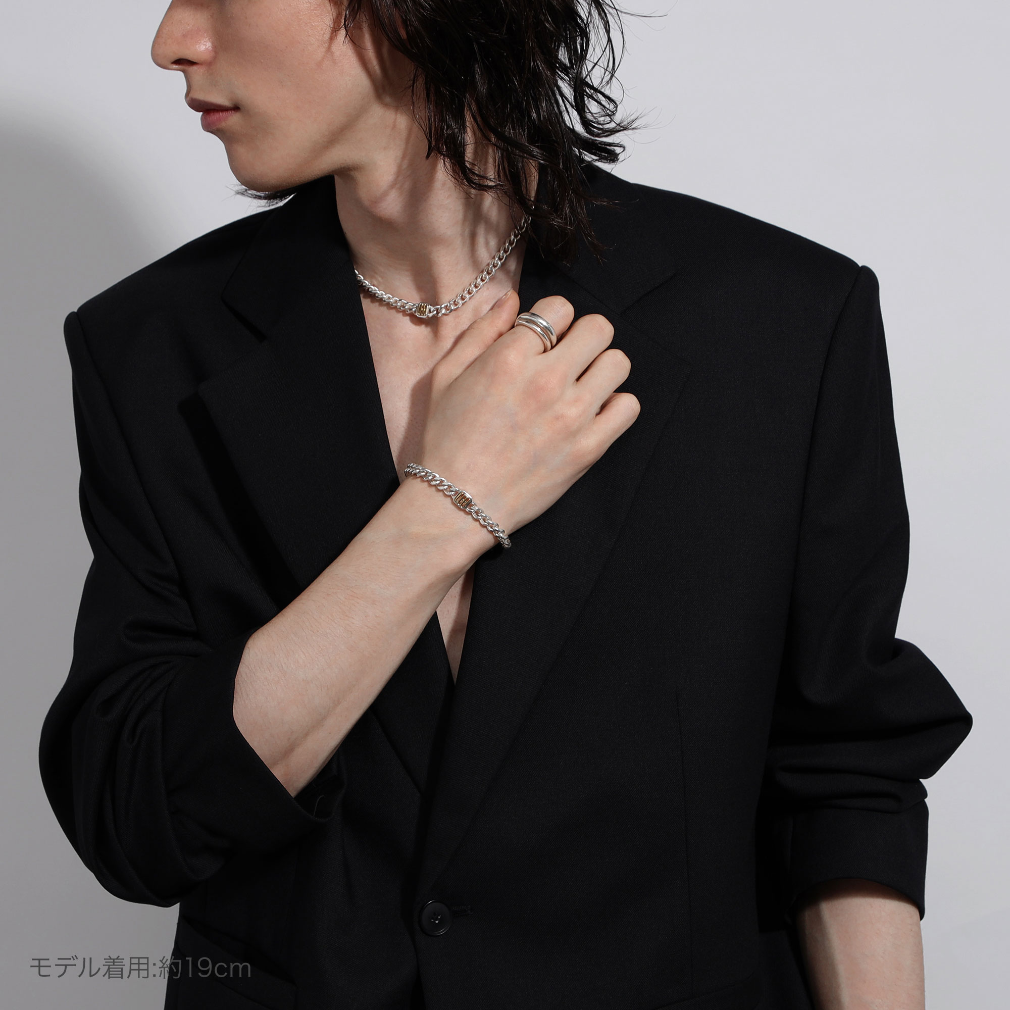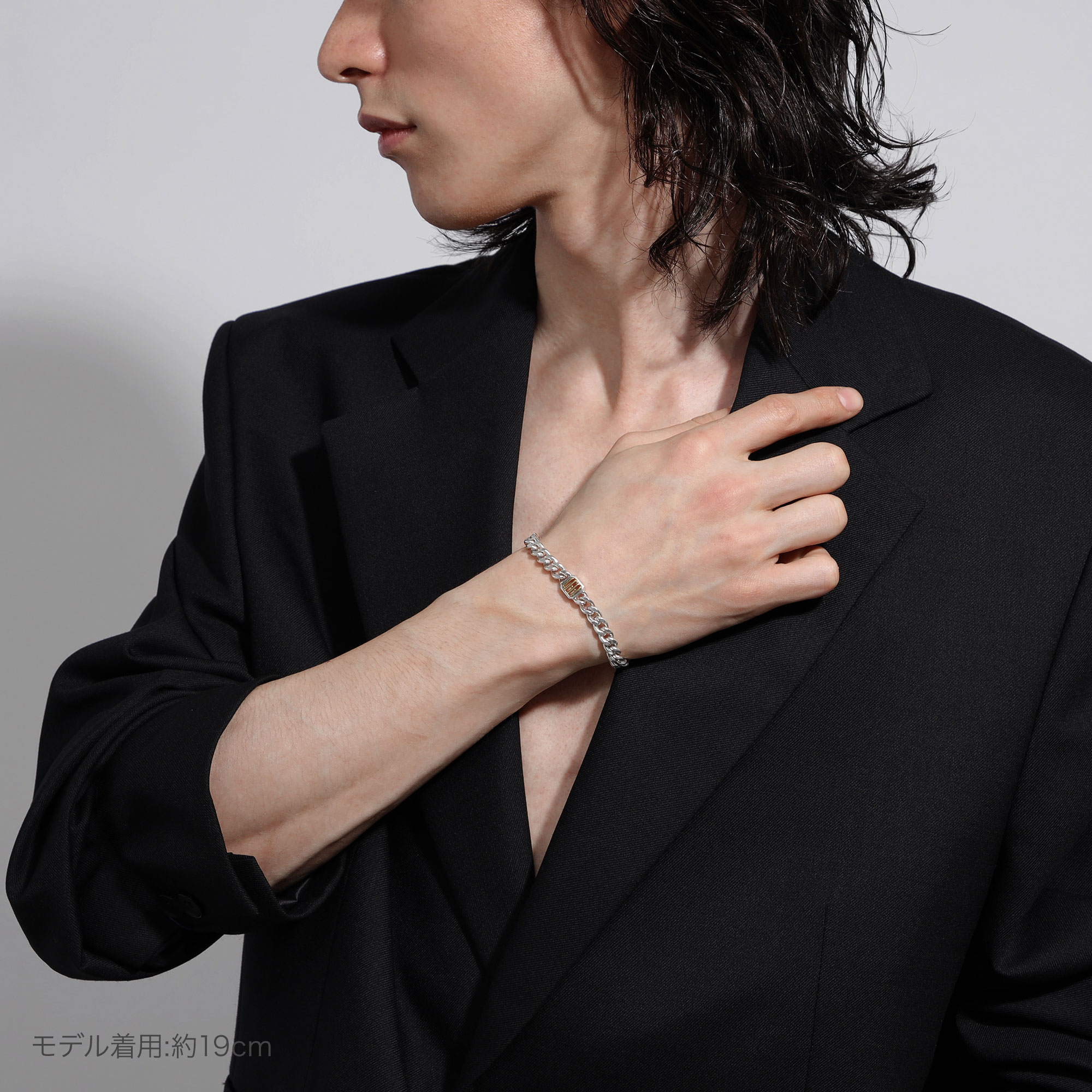 チャンキーなシルバーに、エッジを効かせたゴールドのロゴ使いがスタイリッシュなSIGNET(シグネット)シリーズのブレスレット。