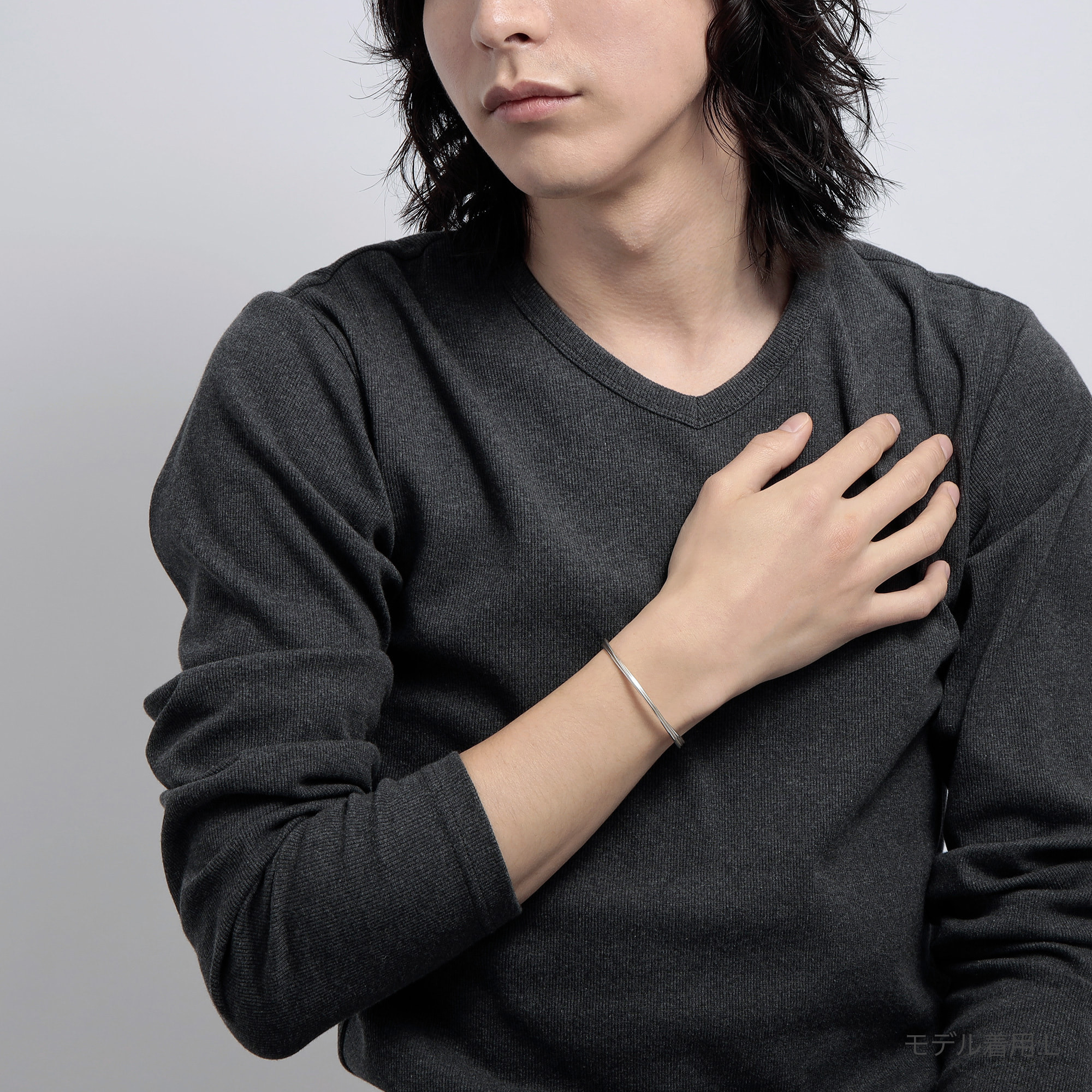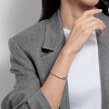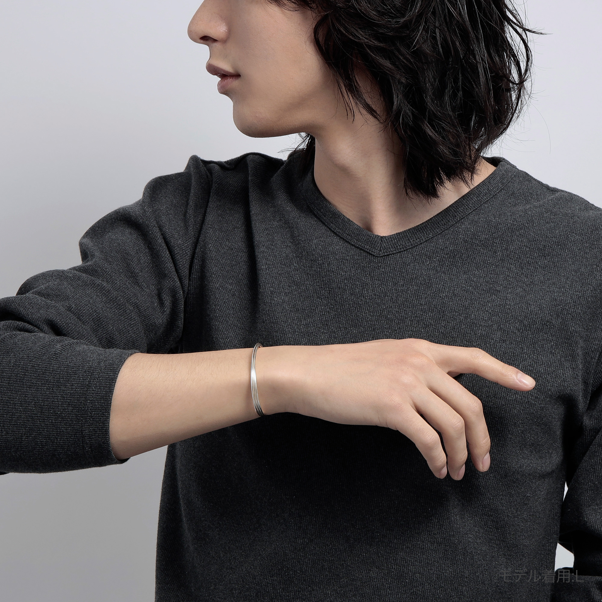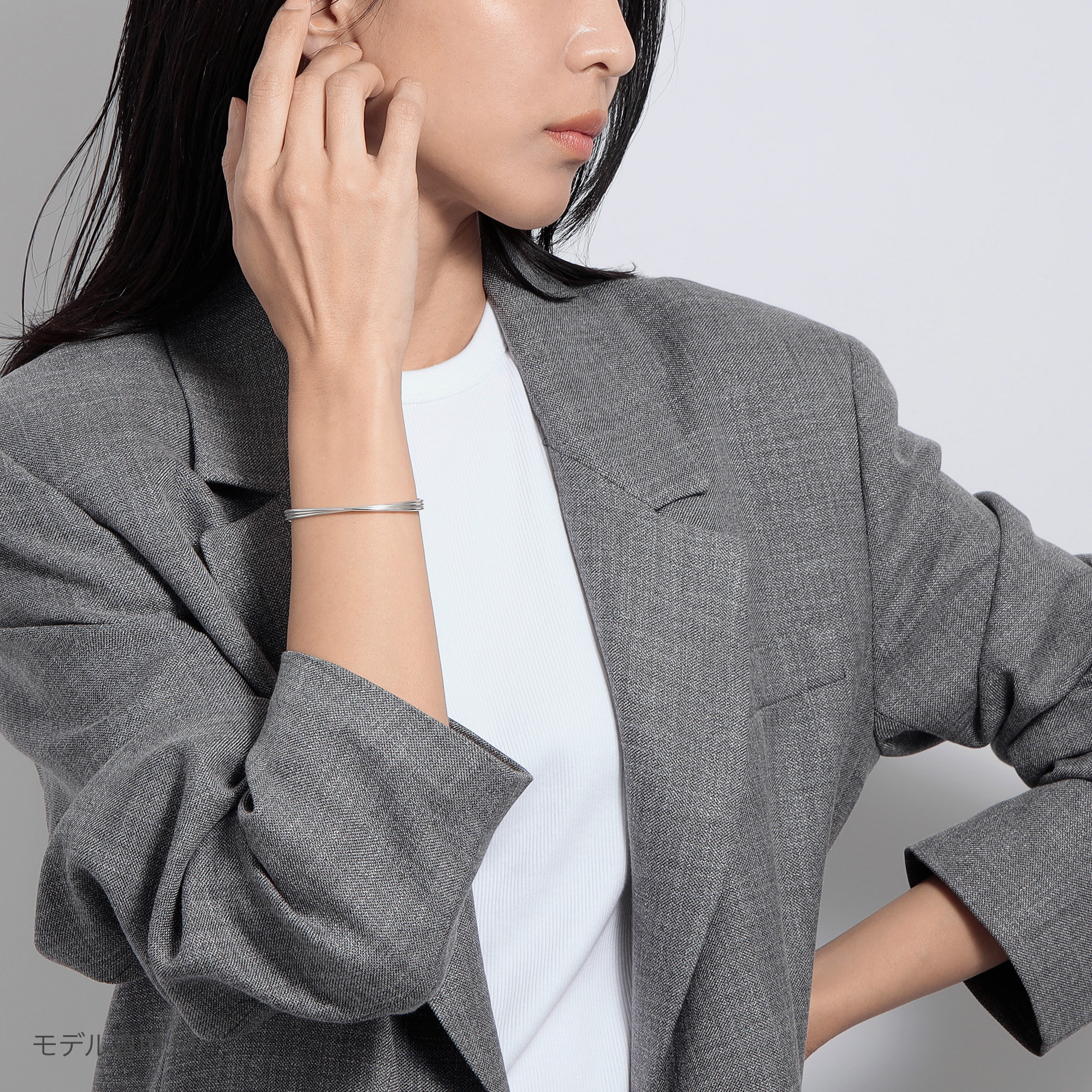 シンプルでベーシックなデザインの中に1箇所ひねりが加わる事で、柔らかな曲線と程よい立体感を感じられるバングル。